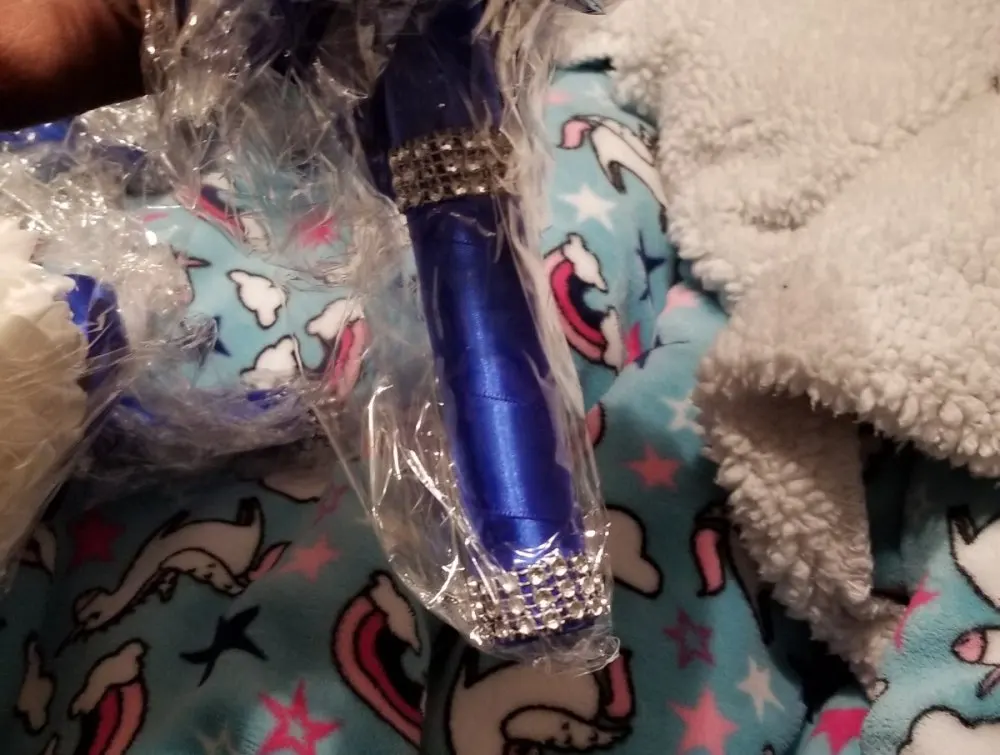 Material: foam flower + rhinestone + ribbon