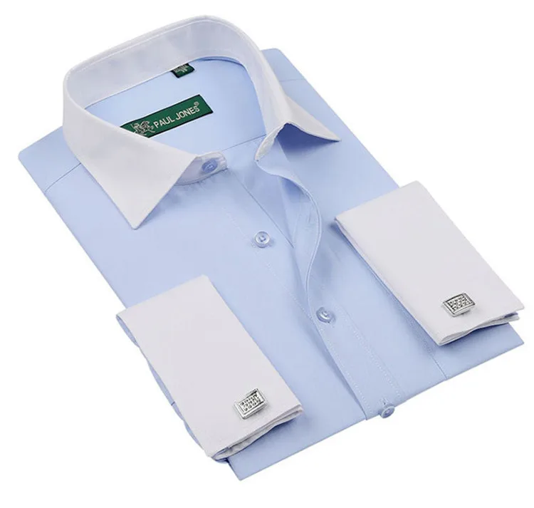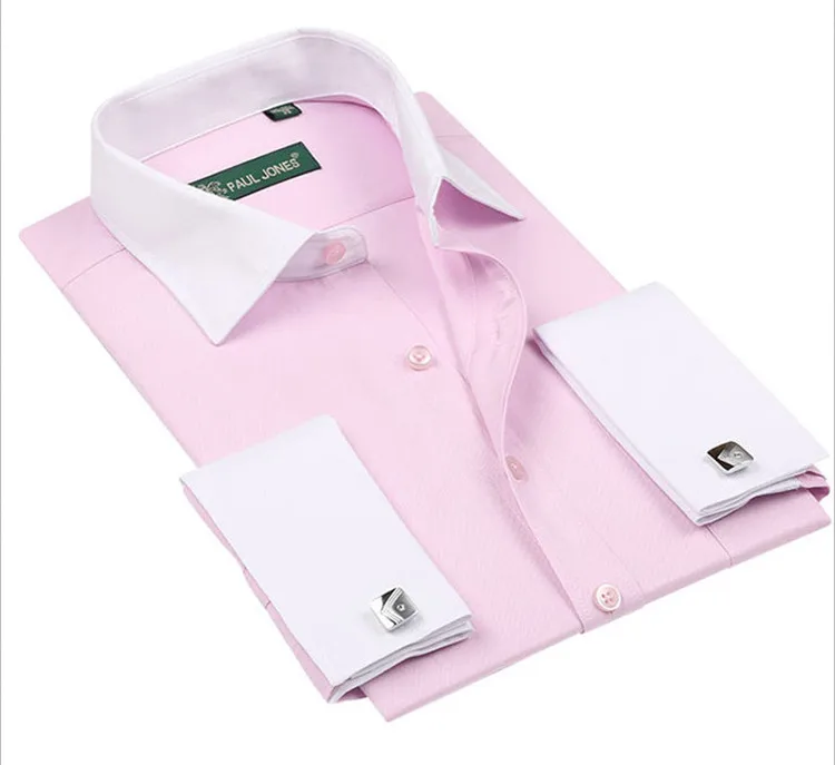 | Shirts 2018 New Men Shirt Mens Solid Luxury French Cuff Long Sleeve Dress Shirts New Patchwork Plaid Neck Classic-fit Formal Shirt M640 |