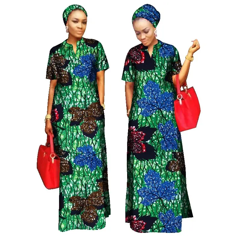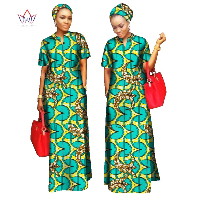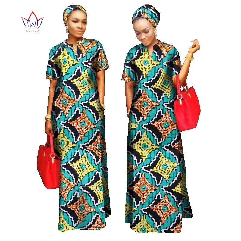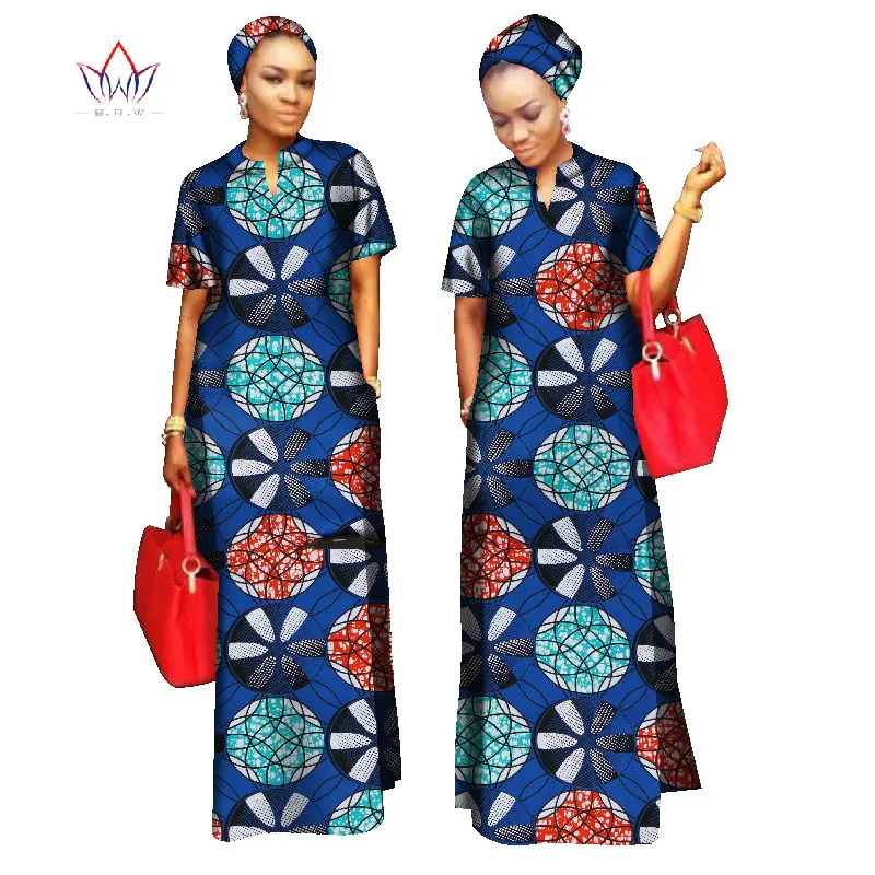2018 African Women Riche Bazin Straight 100% Cotton Material Free Head Scarf Lady Long Dress Maxi Size