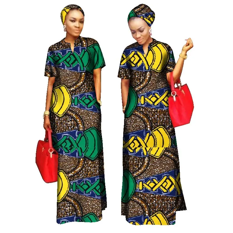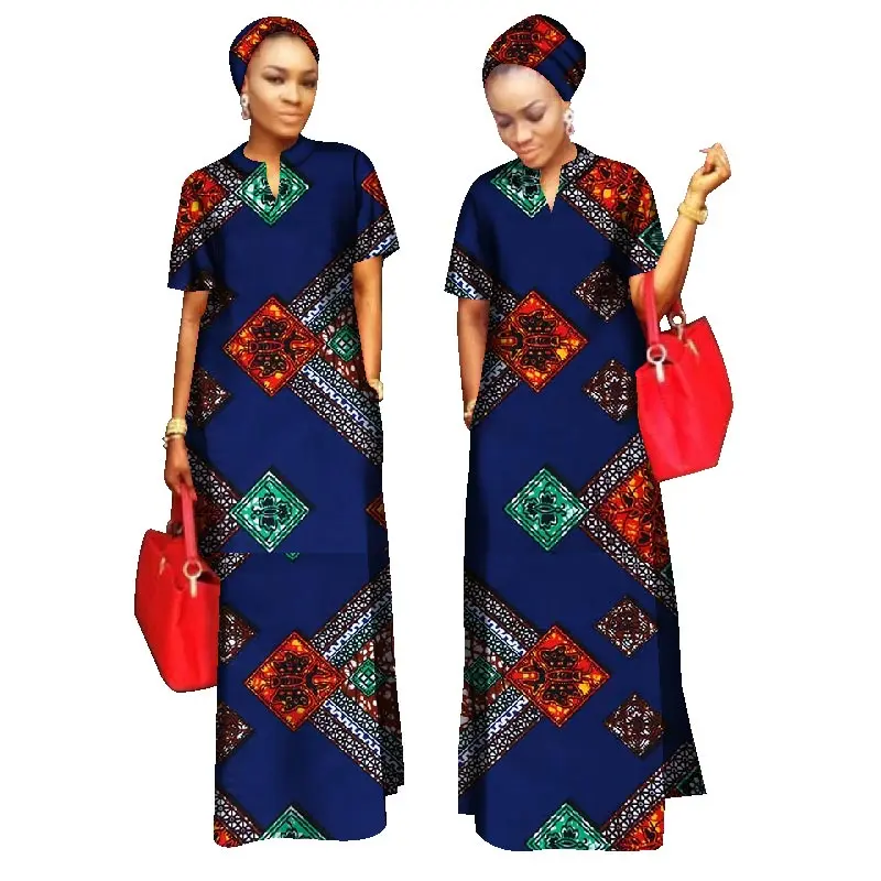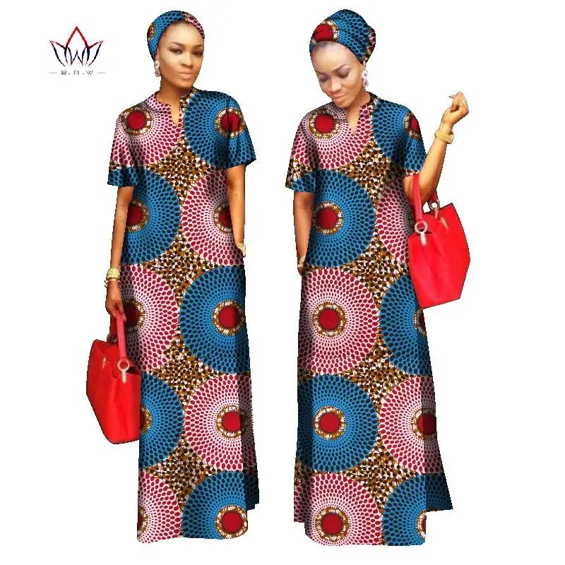 2019 African Dresses for Women Straight Riche Bazin African Clothes For Women With Head Scarf Batik Lady Long Dress