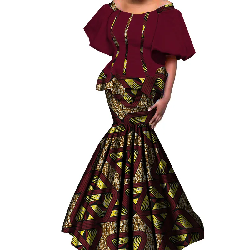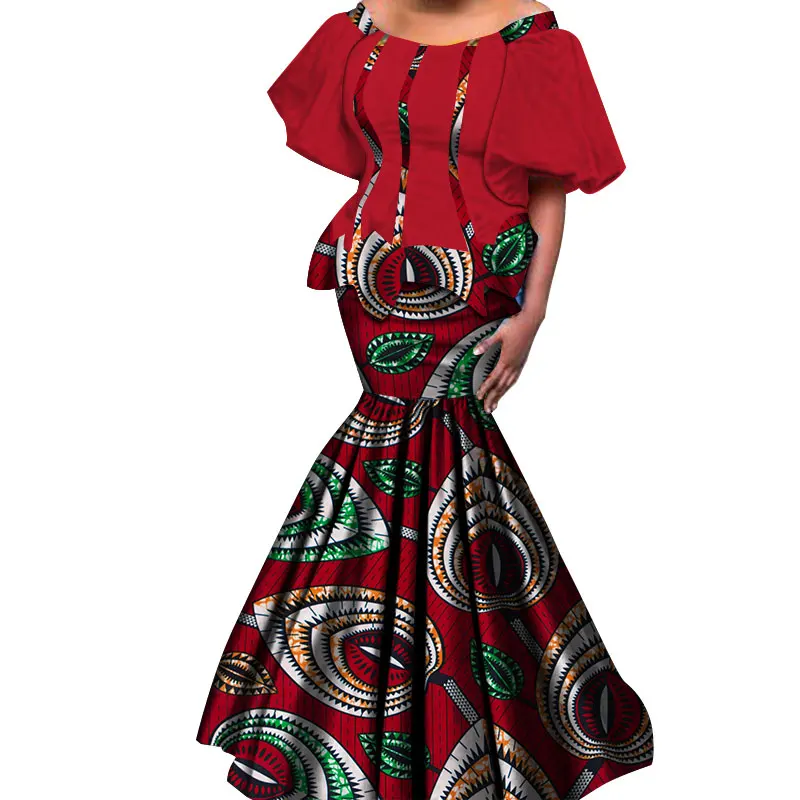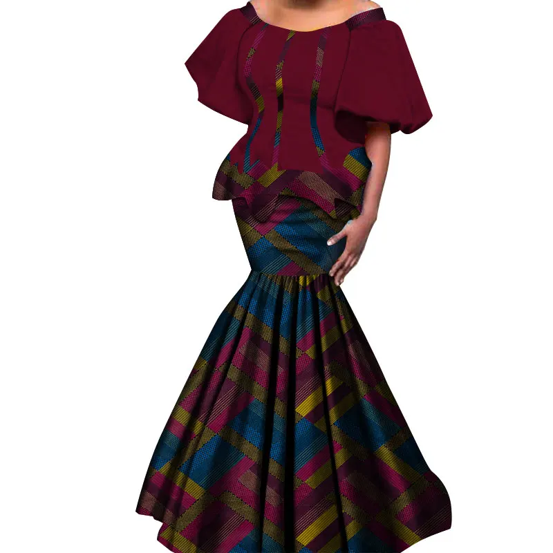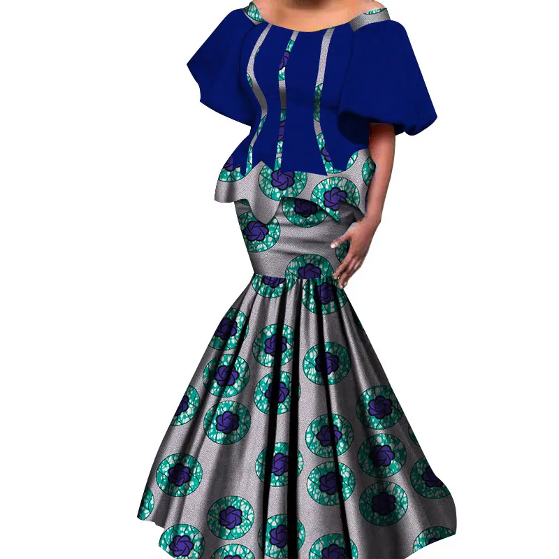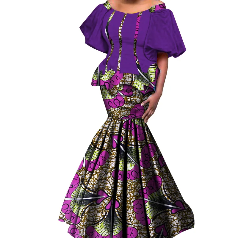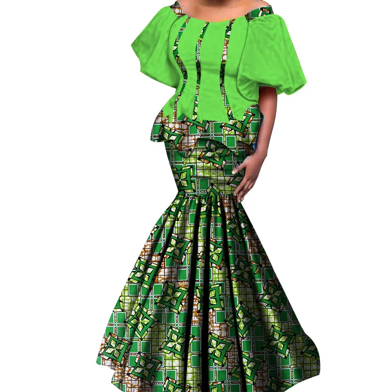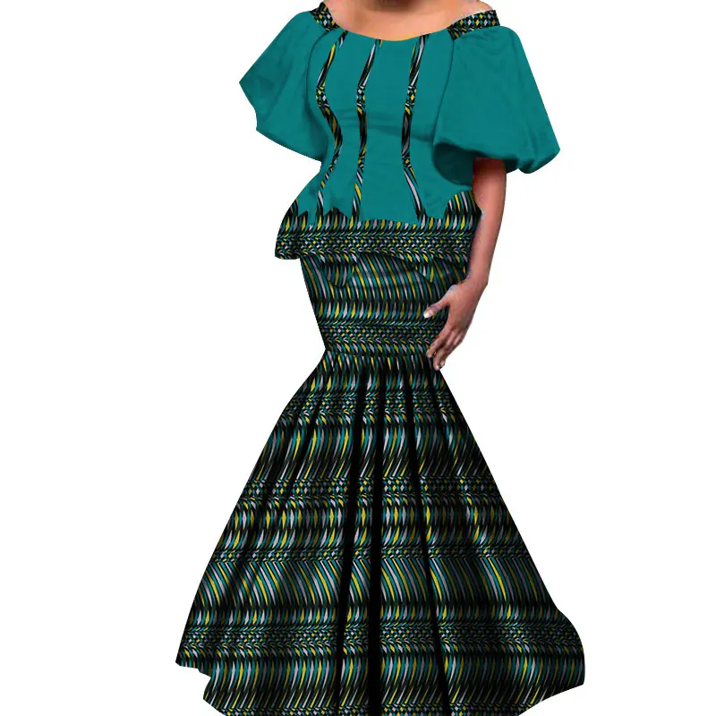 2019 New African Kanga Dresses for Women Dashiki Traditional Cotton Top Skirt Set of 2 pieces Clothing African Clothes WY4306