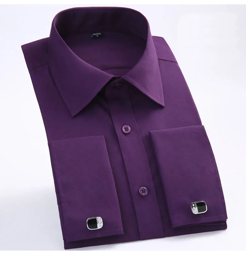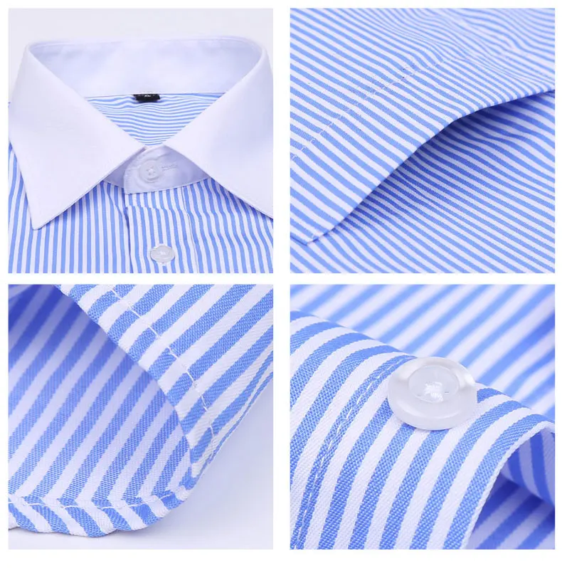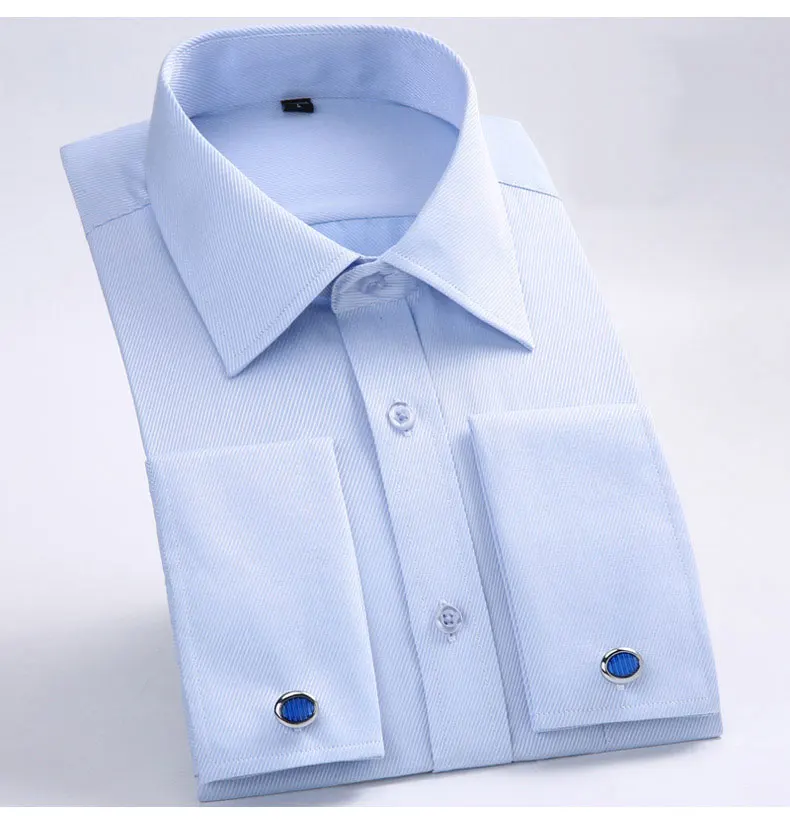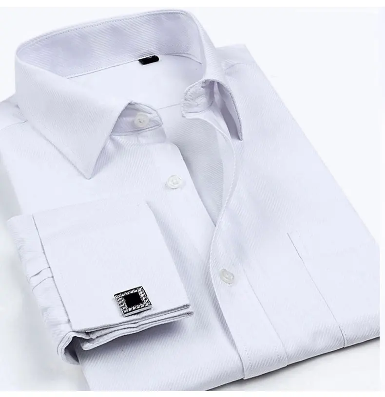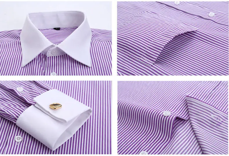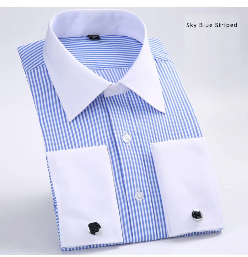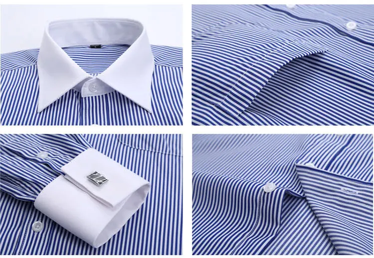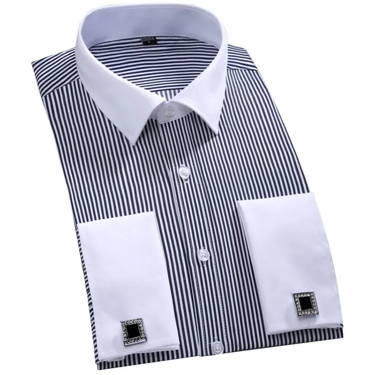 2019 New Men French Cufflinks Shirt Social Men’s Stripe Shirt Long Sleeve Casual Male Brand Regular Fit French Cuff Dress Shirts