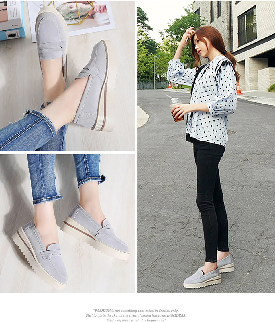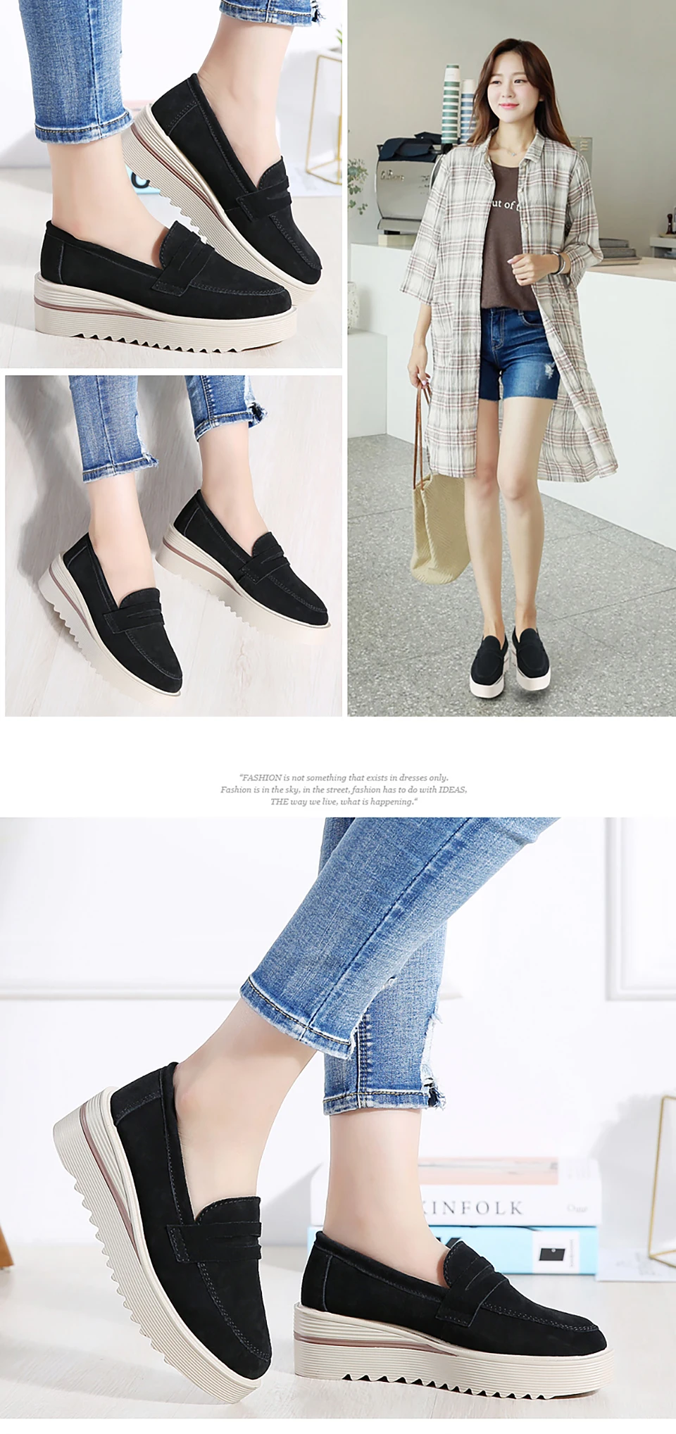 2019 Spring Women Flats Shoes Leather Platform Sneakers Casual Shoes Women Slip On Flats Loafers Ladies Shoes Mocassins Creepers