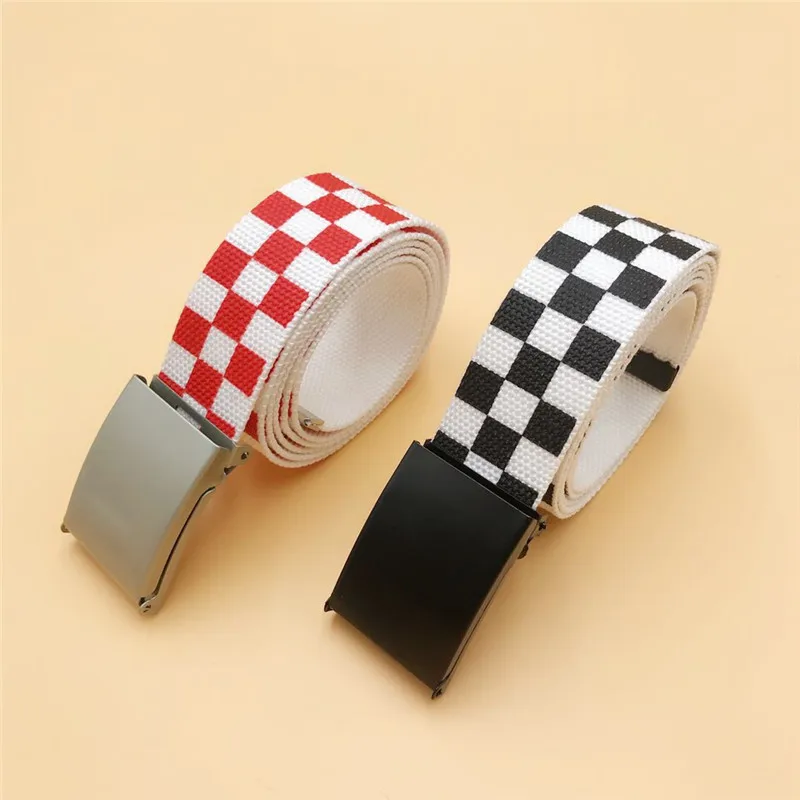 2019 Waistband 108cm Black White Plaid Belt Canvas Checkerboard Belts Cummerbunds Canvas Waist Belts Casual Checkered