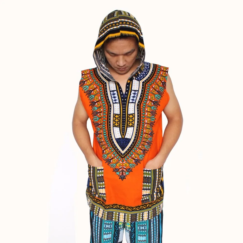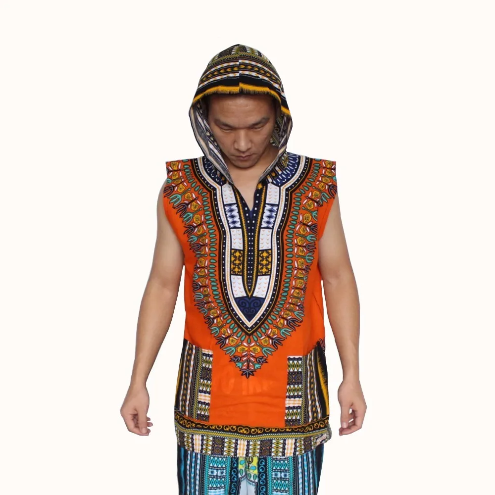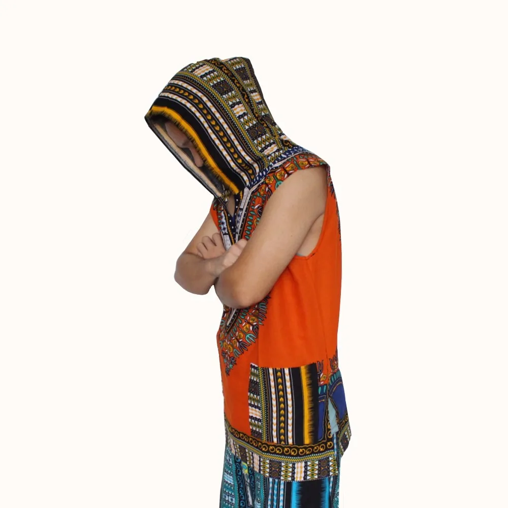 (3pcs/lot) Wholesale African Hoody Sleeveless 100% Cotton Men’s Hoodie Dashiki with Hood