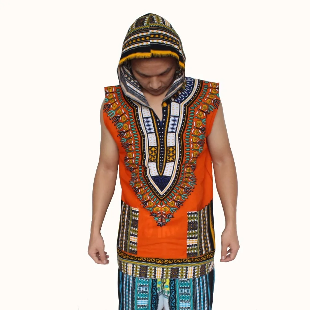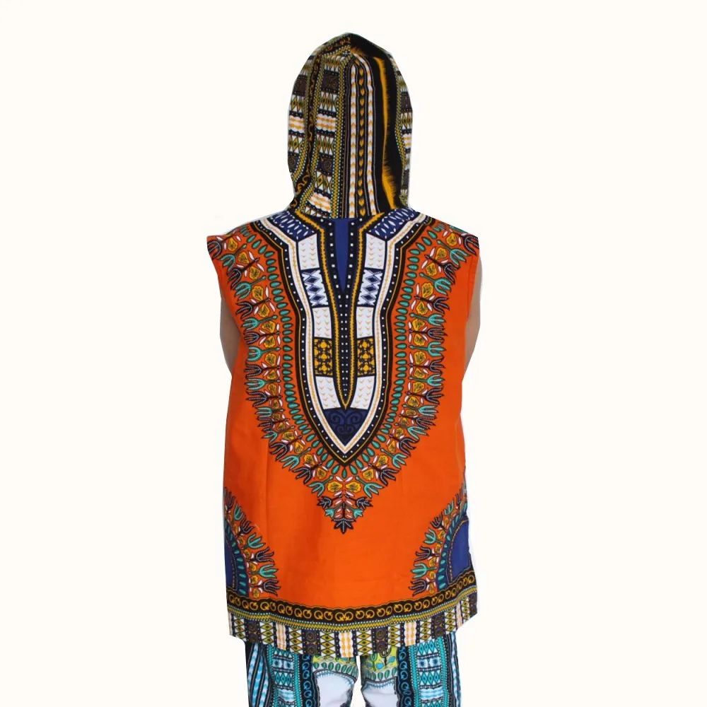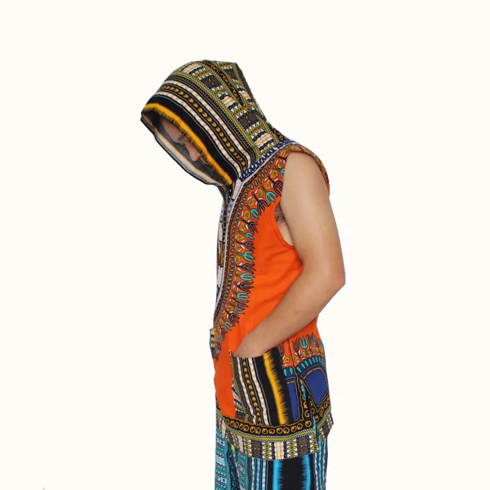 (3pcs/lot) Wholesale African Hoody Sleeveless 100% Cotton Men’s Hoodie Dashiki with Hood