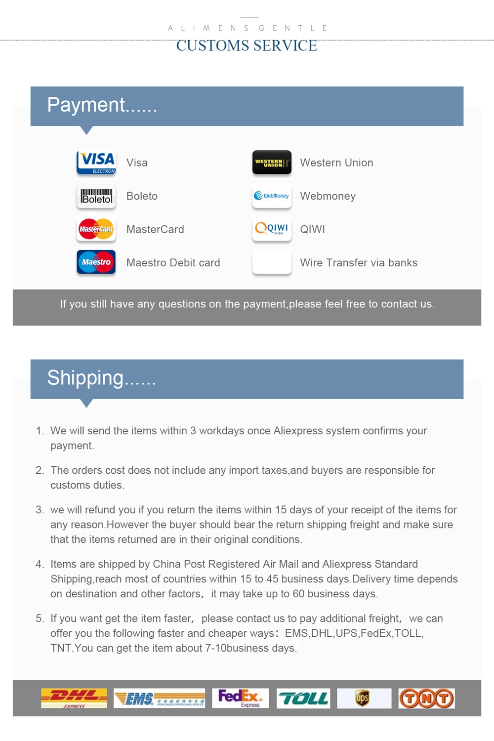 We are not responsible for any custom fees once the items have shipped. By purchasing our products, you consent that one or more packages may be shipped to you and may get custom fees when they arrive to your country.