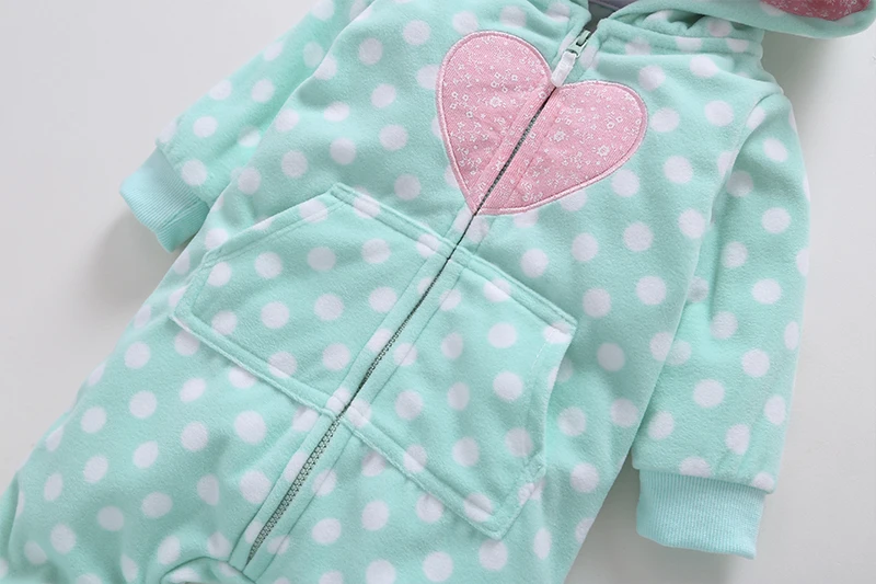 Baby Boy Girl Hooded Thick Rompers Fleece Long Sleeve with Zipper Bodysuit and soft cotton Overalls roupas de bebe Clothing Set