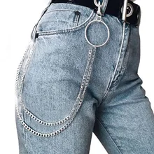 1Layer/2Layer/3Layer Rock Punk Hook Trousers Pant Waist Link Belt Chain Metal Wallet Silver Chain Fashion Men Jewelry