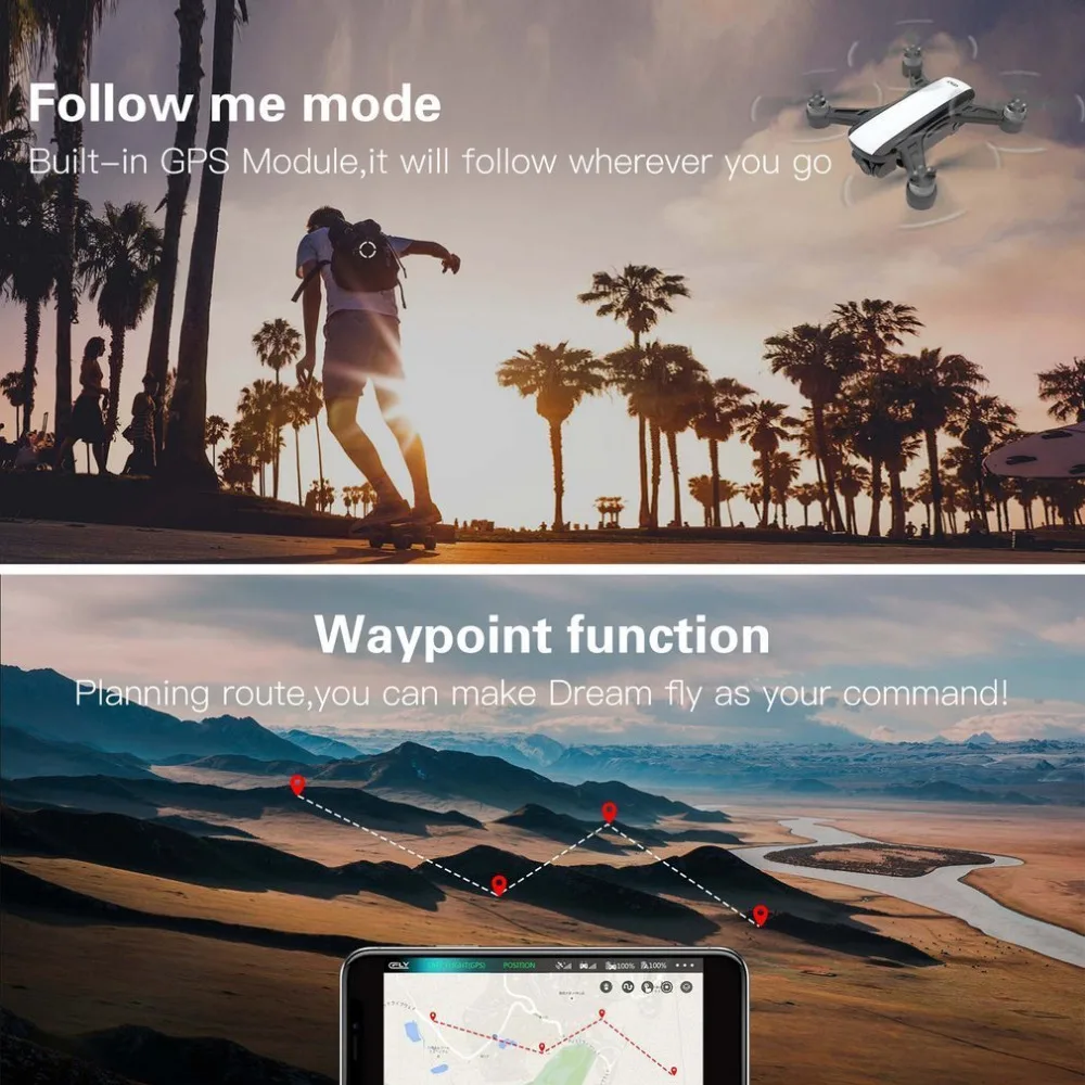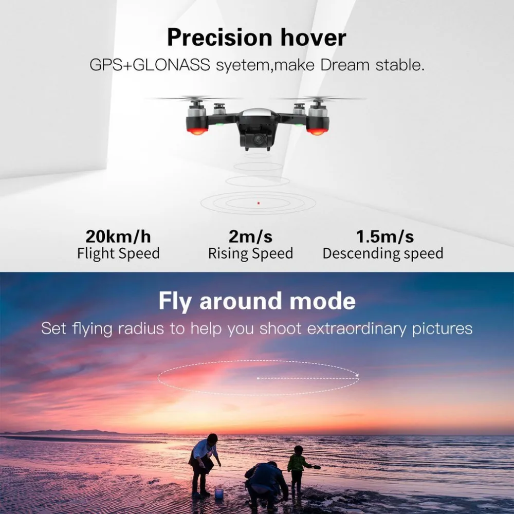 1 Precise hover: with GPS GLONASS system, fly stable and has follow me function and could auto return when the battery power is low or the drone and the controller cut off connection.