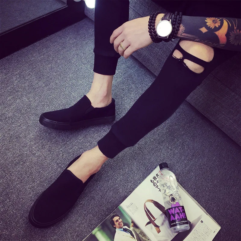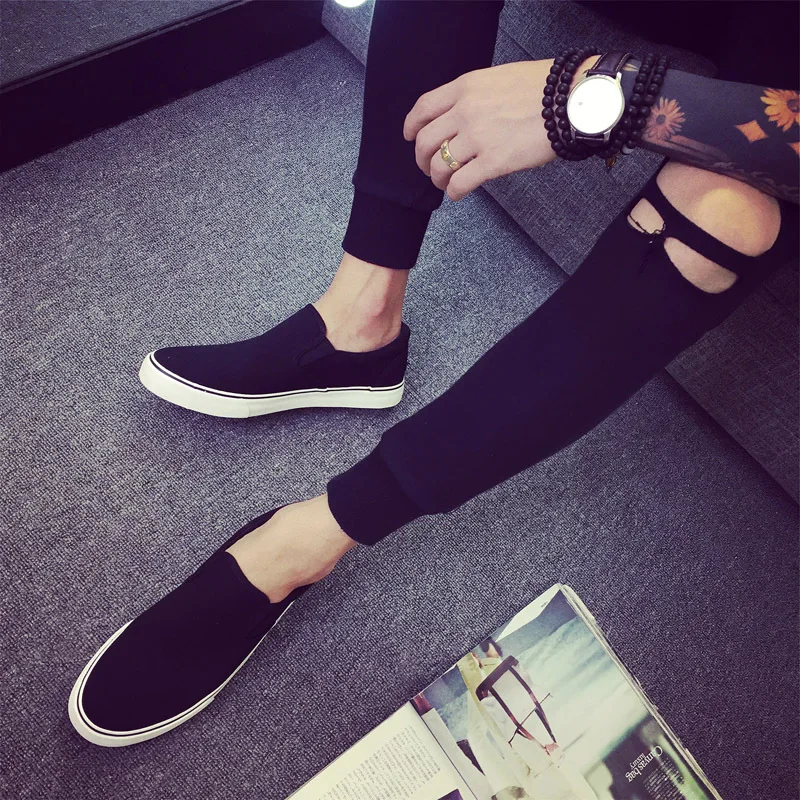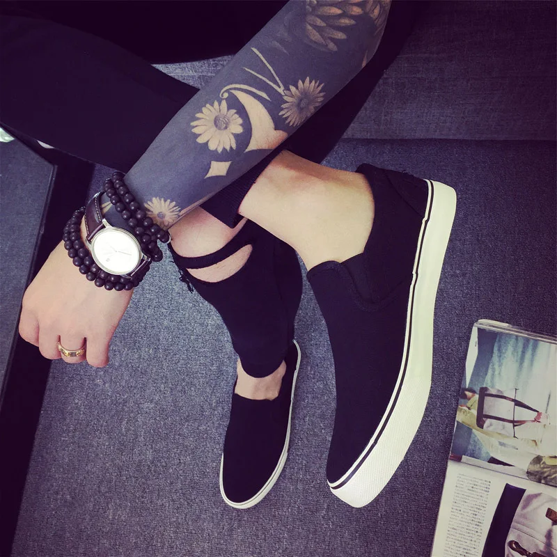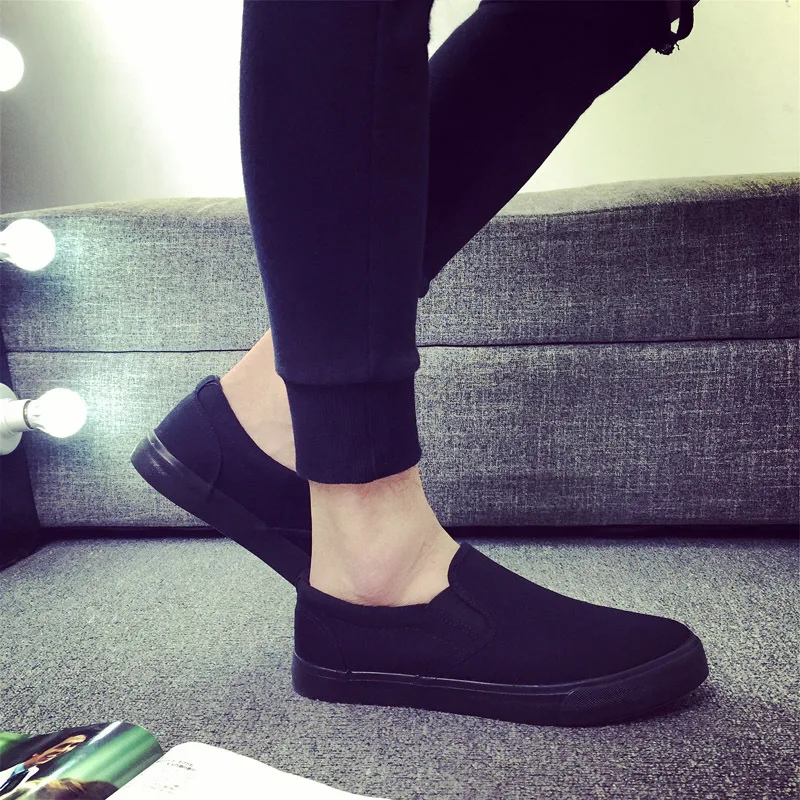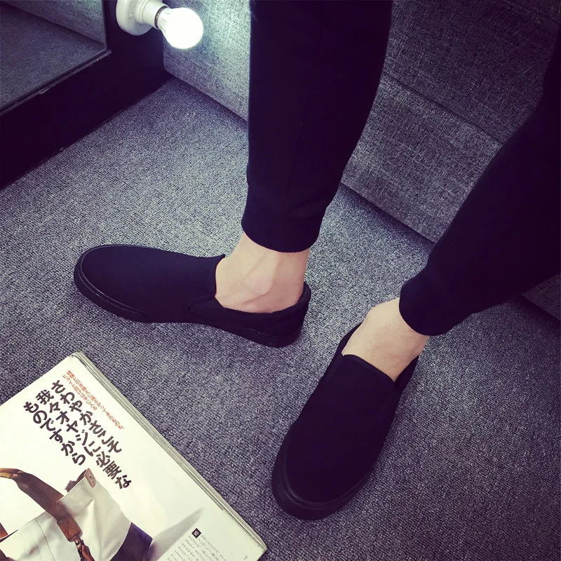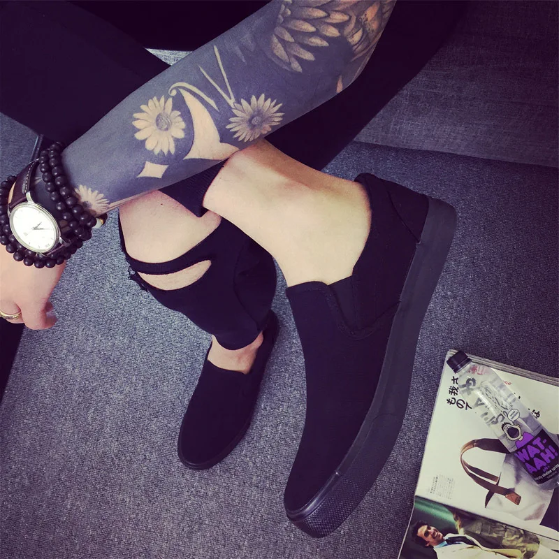 Canvas shoes men’s shoes all black casual solid color large size zapatos de hombre mens loafers chunky sneakers