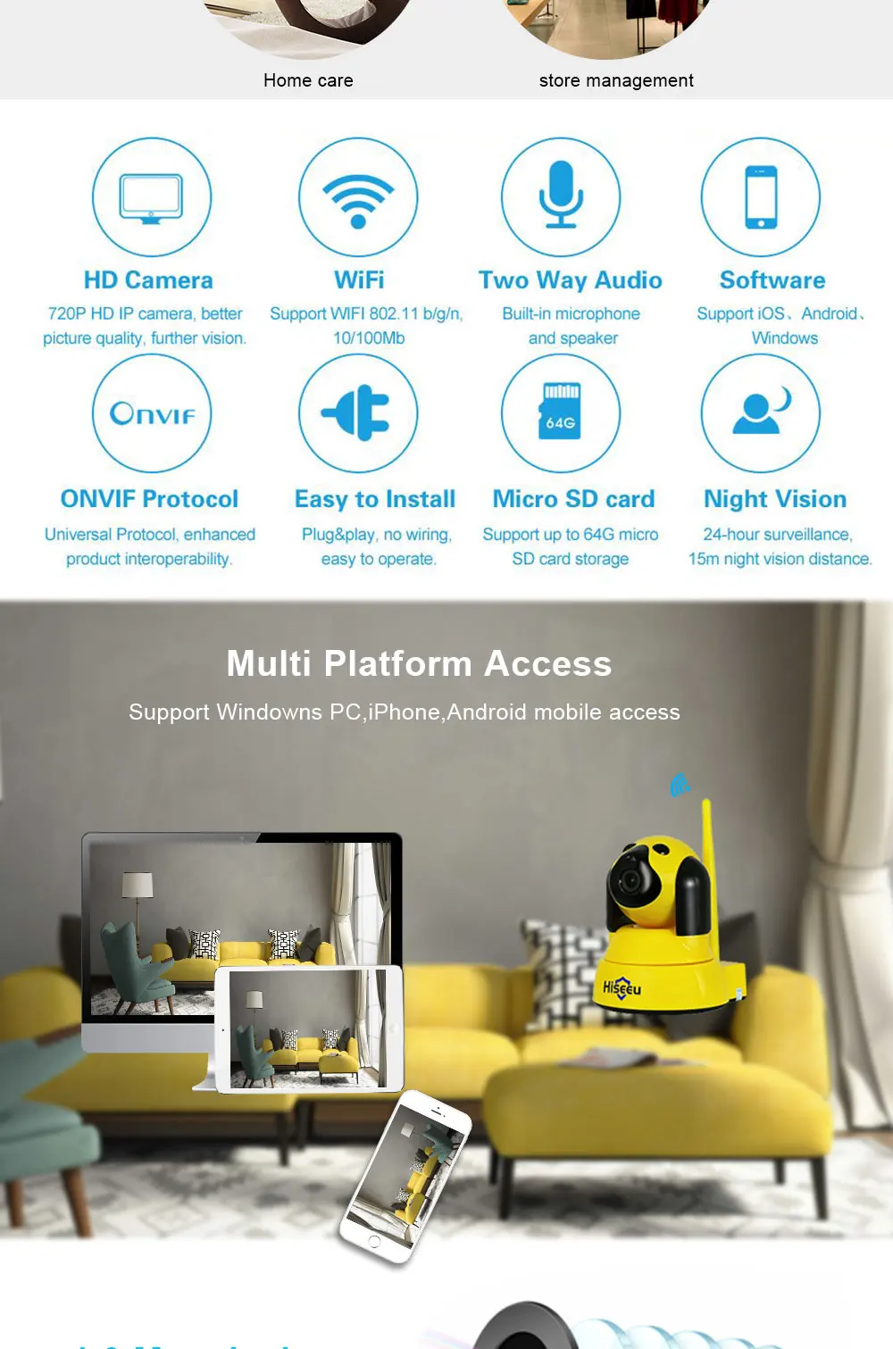 Hiseeu Mini Wifi Dvr Wireless Ip Camera HD 720P Baby Monitor Night Vision CCTV Indoor Smart Dog Sricam Wifi Camera Drop Shipping