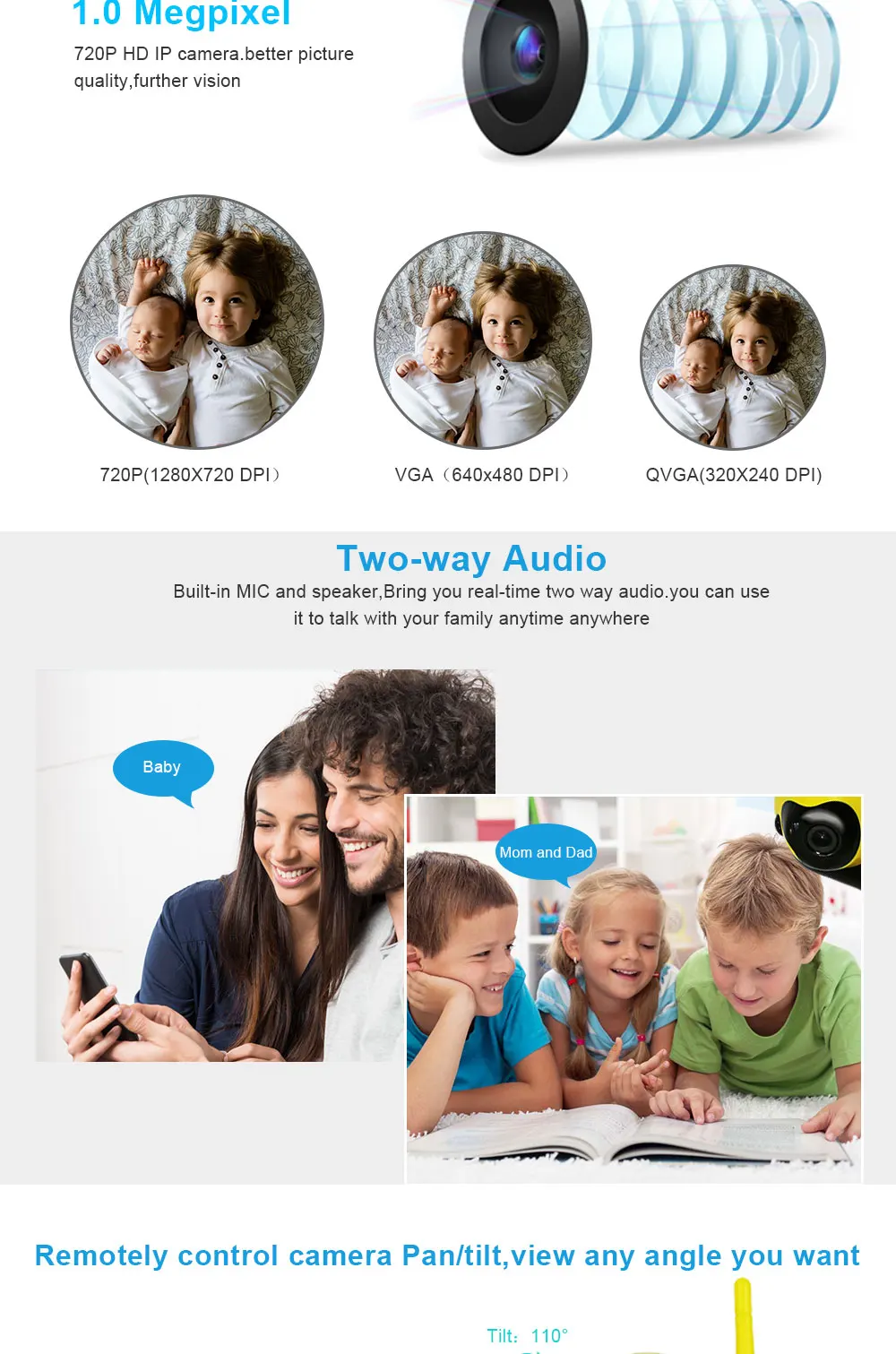 Package Include:720P Smart IP Camera *1 + AC 100-240V to DC 5V power adapter(EU/US/UK/AU) *1 + Camera Bracket(Black or White color) *1 + Screws + Quick Guide *1 + Lan Cable *1(send)