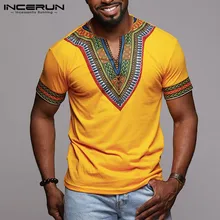 INCERUN Fashion Men Dashiki T Shirt V Neck Print Tops African Ethnic Short Sleeve Brand T-shirts Men African Clothes 2019 S-5XL