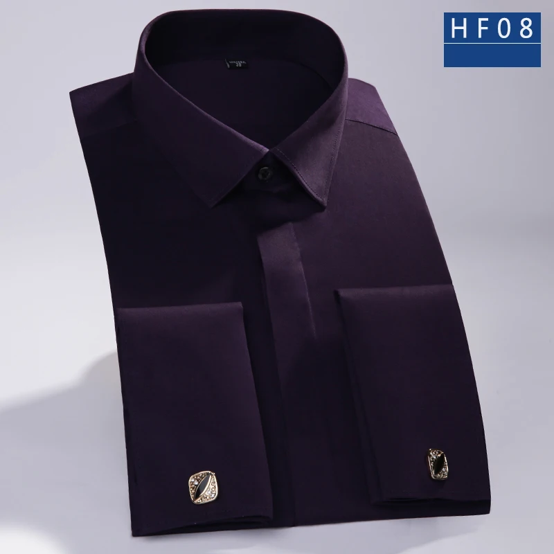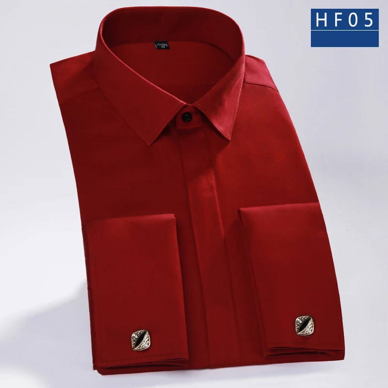 DAVYDAISY 2018 New Arrival 100% Cotton French Cuff Men’s Shirt Red Long Sleeved Man Formal Solid Shirts Weeding Shirt DS223