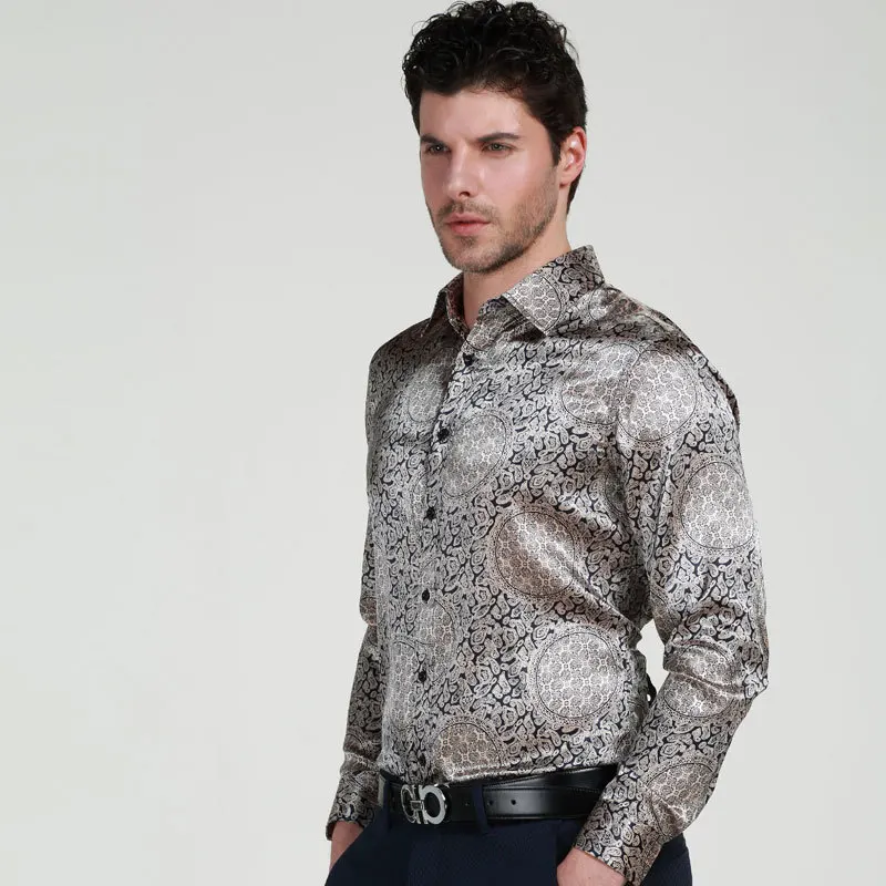 Fashion Groom Wedding Formal Dress Shirt Printing Paisley Men's Long Sleeve Casual Shirt S02