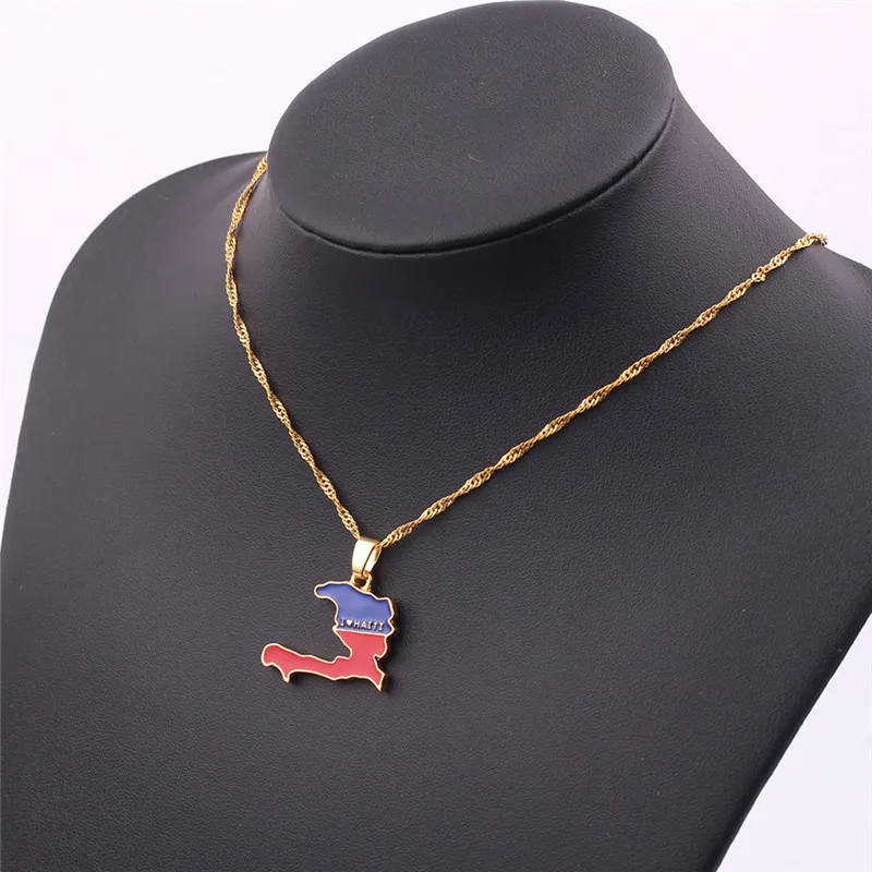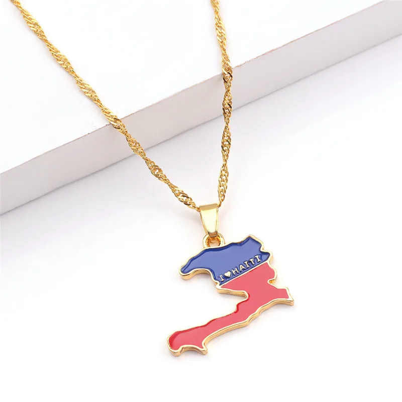 Fashion Necklaces 2019 I LOVE HAITI Map Flag Necklace Pendants Ayiti Gold Color Jewelry Maps of Haiti