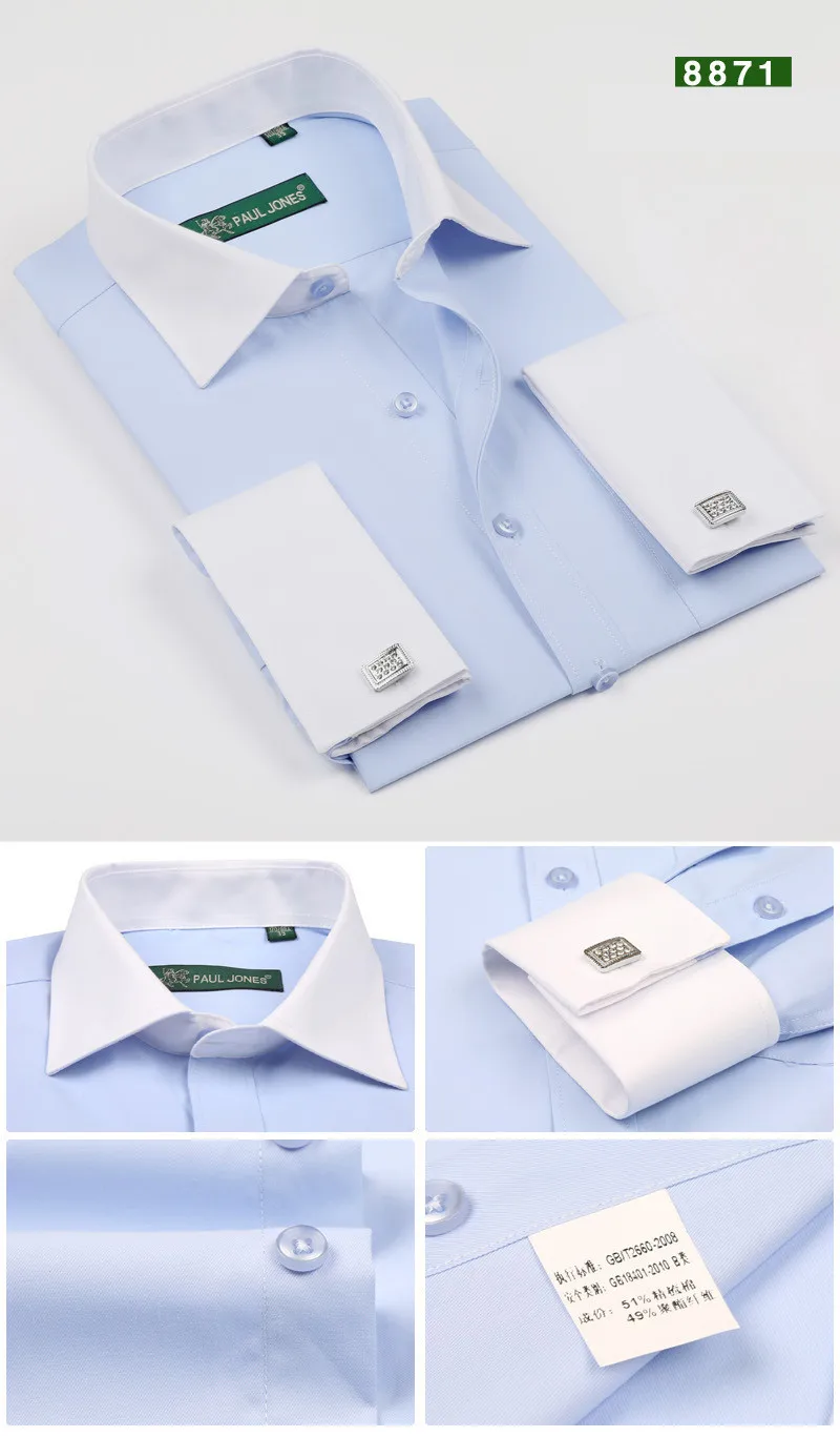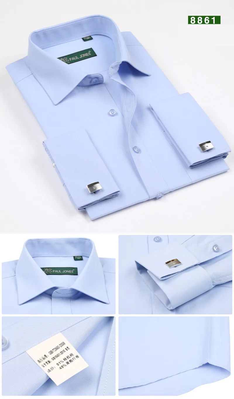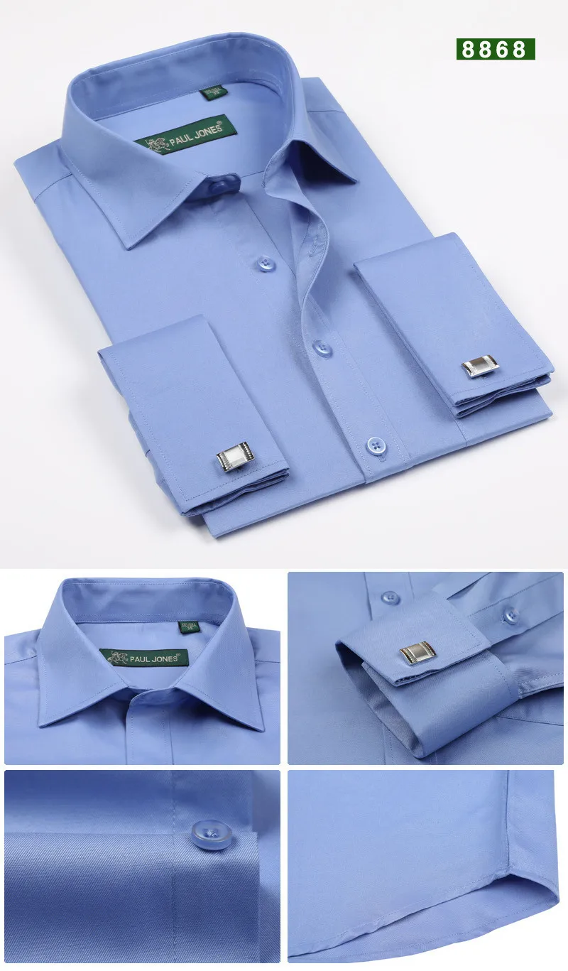Solid Color French Cuff Button Dress Shirts
