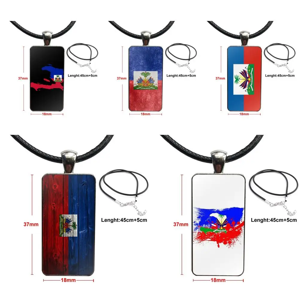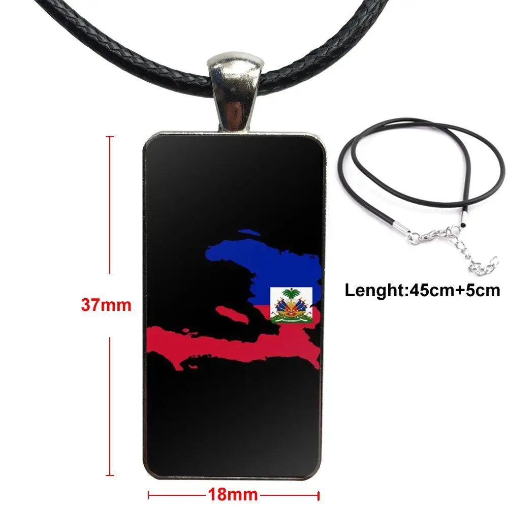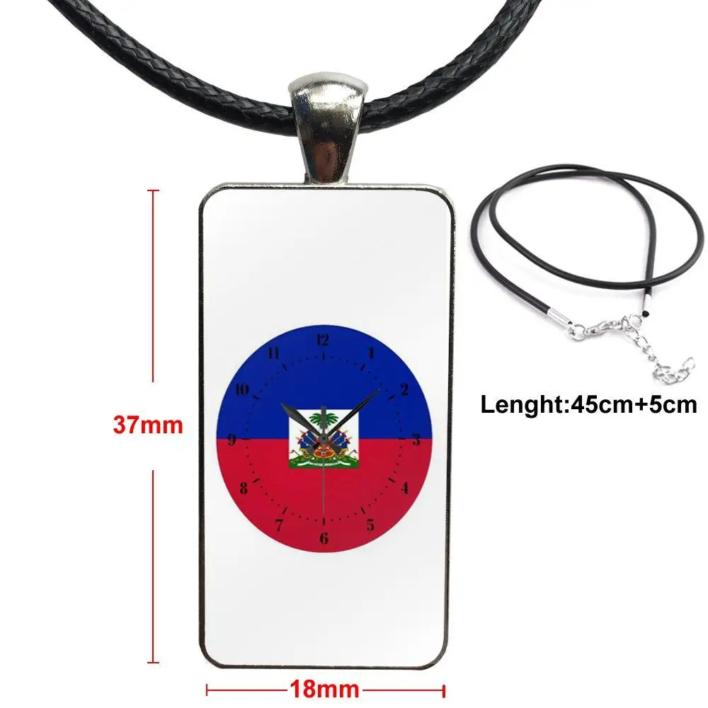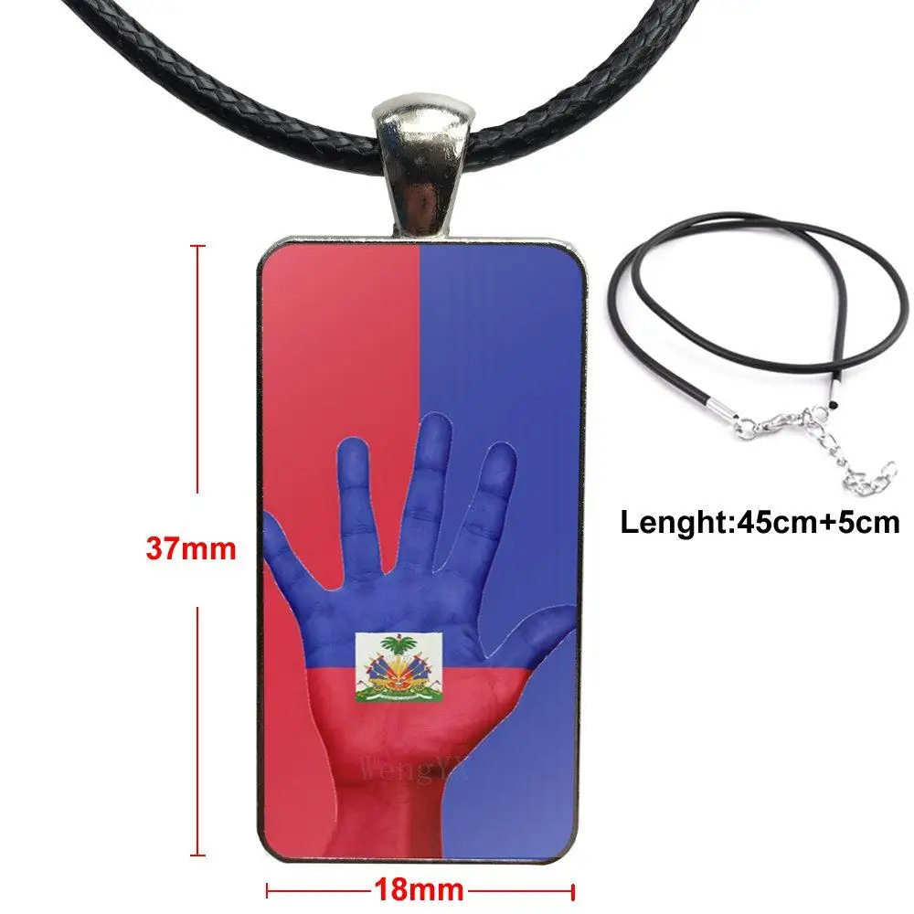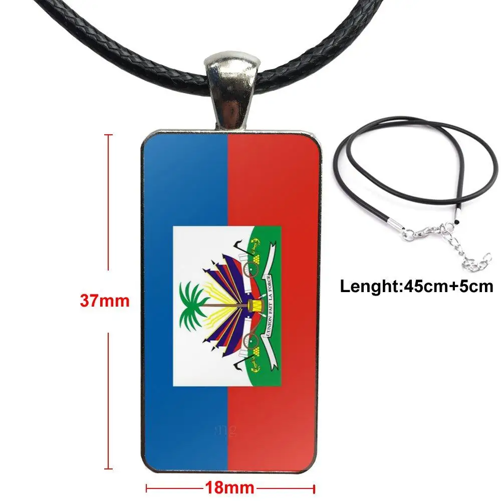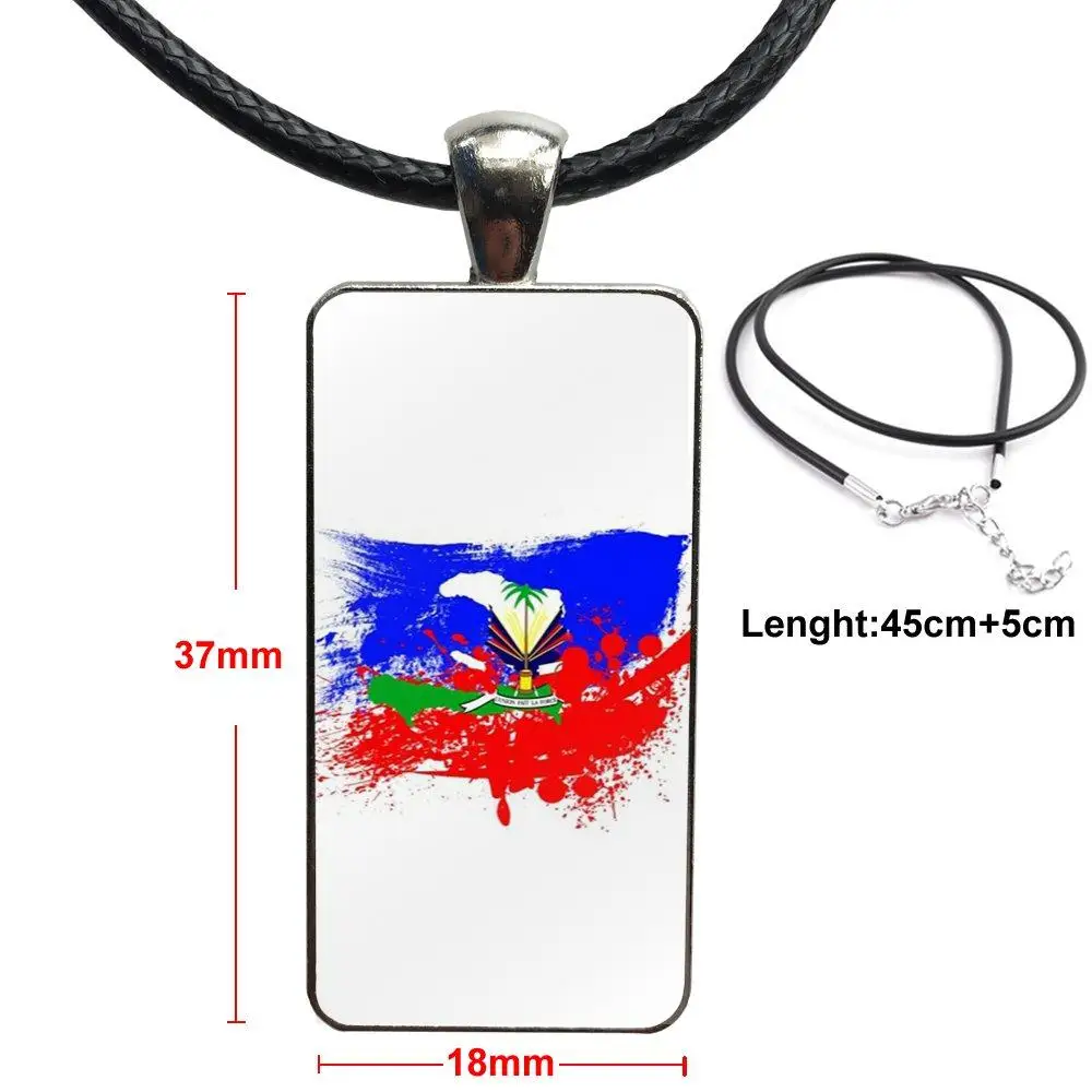 For Girls Statement Maxi Vintage Haiti Haitian Flag Glass Cabochon Pendant Necklace Rectangle Fashion Necklace