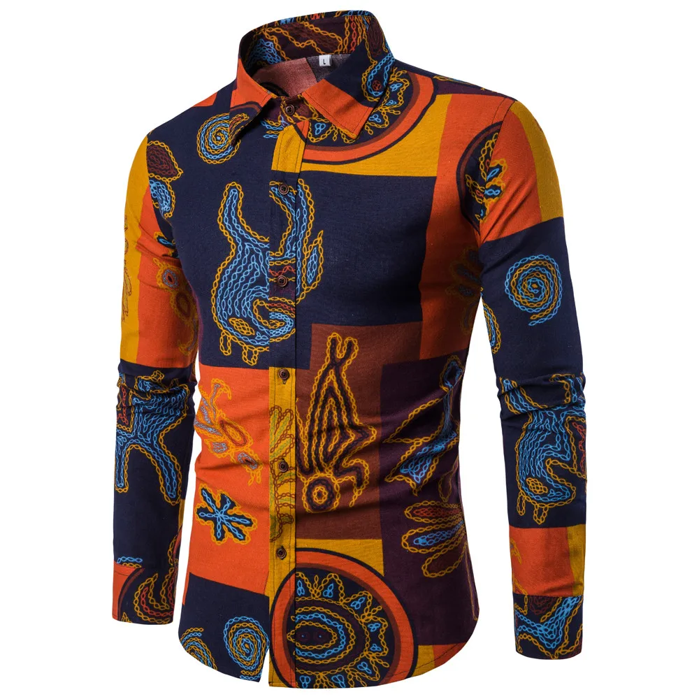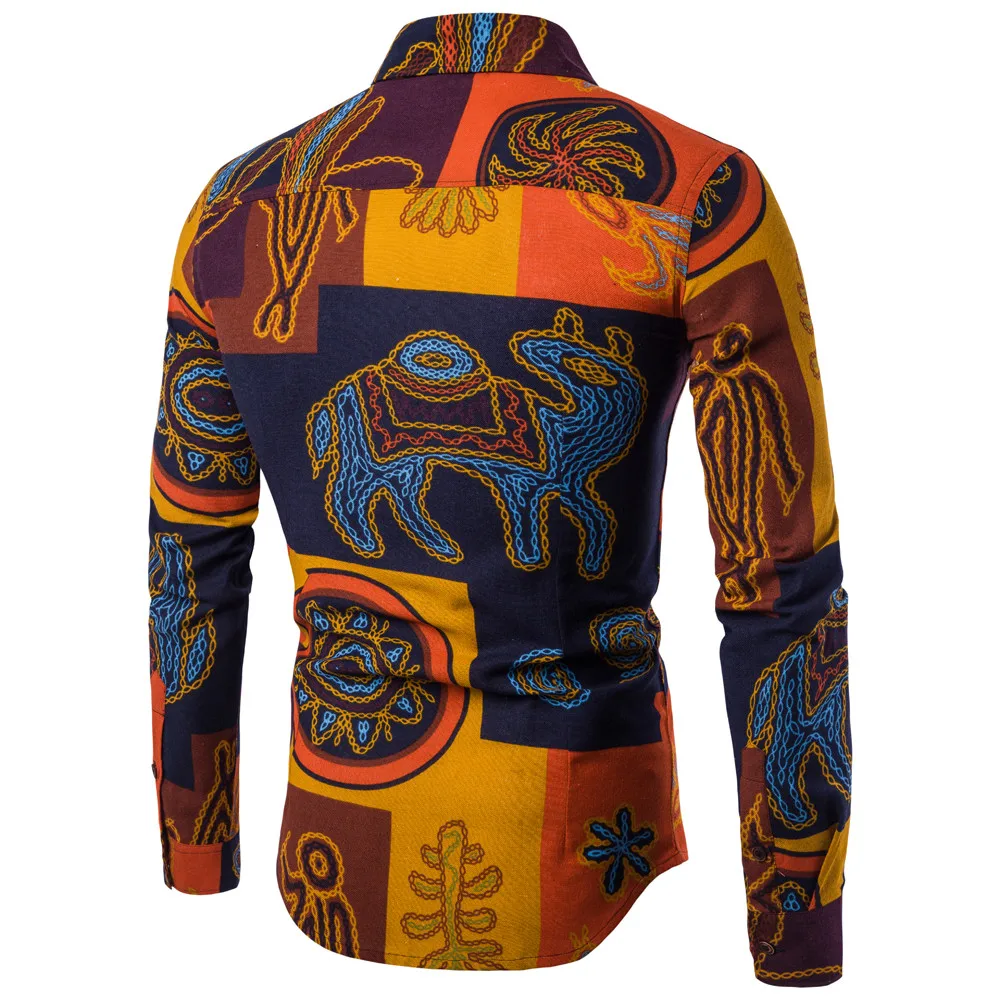 Mens Casual Long Sleeve Shirt Business Slim Fit Shirt Print Blouse Top