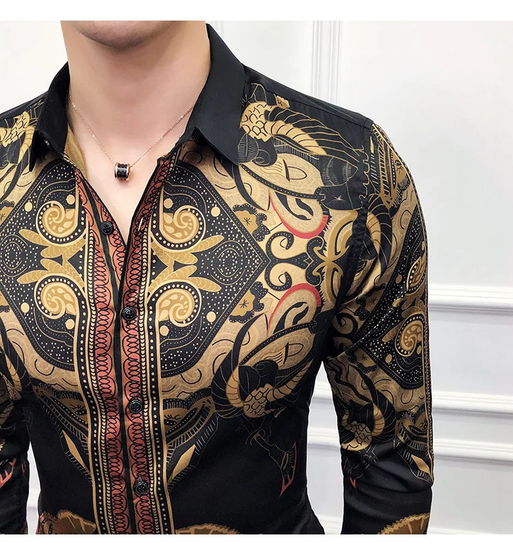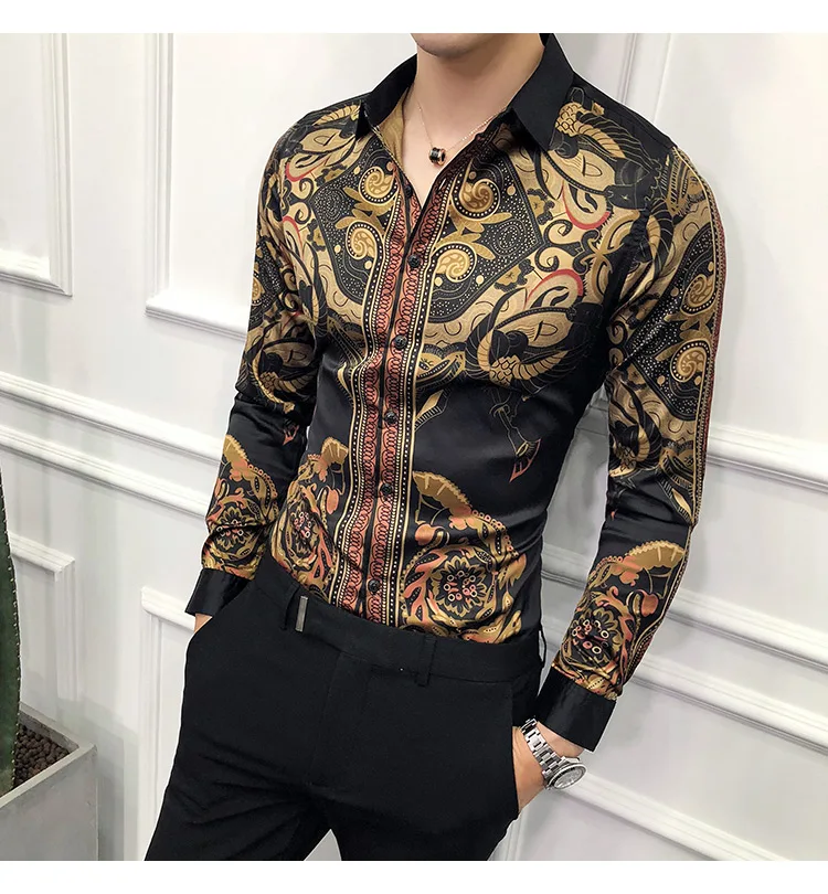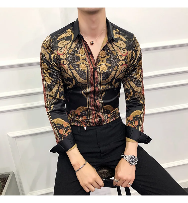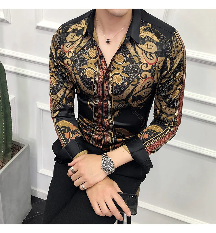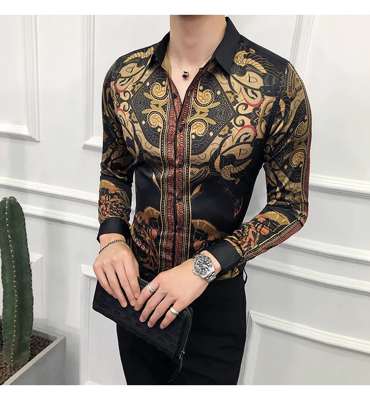 Golden Royal Print Men Cotton Long Sleeve T-shirt Male T shirt tops