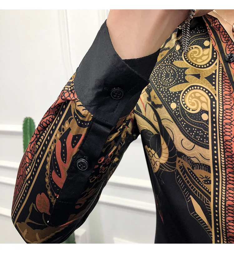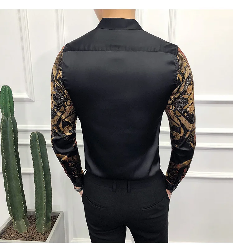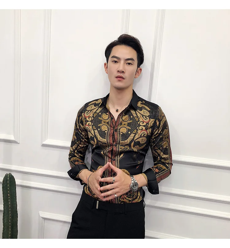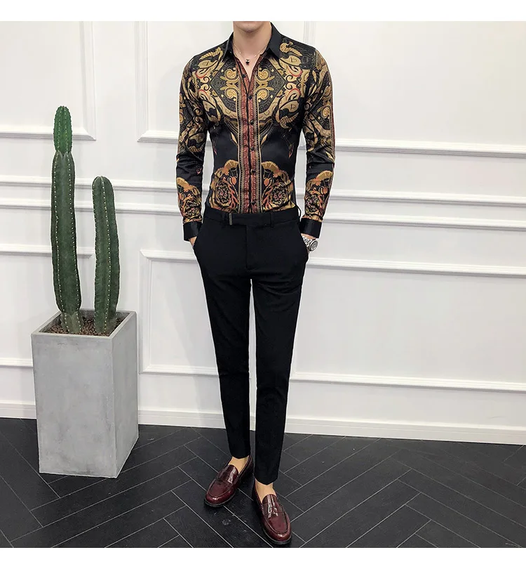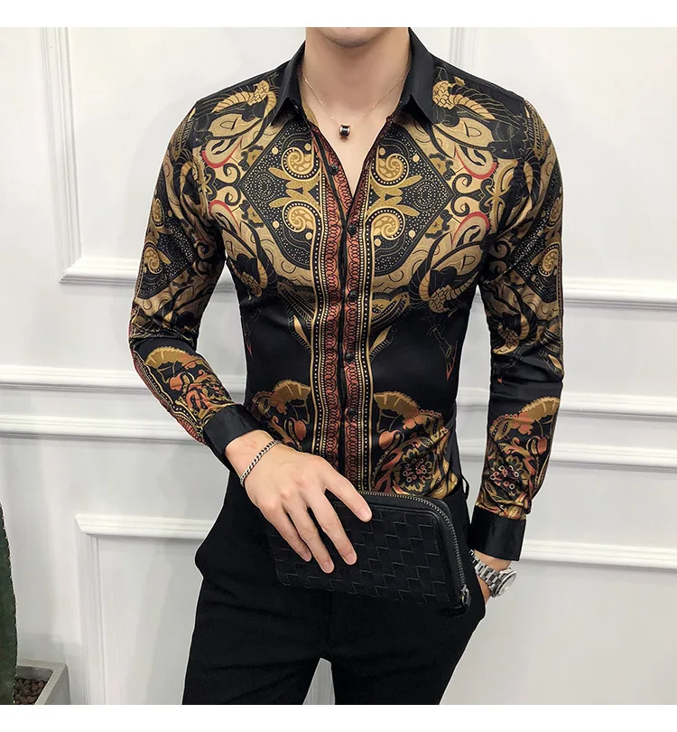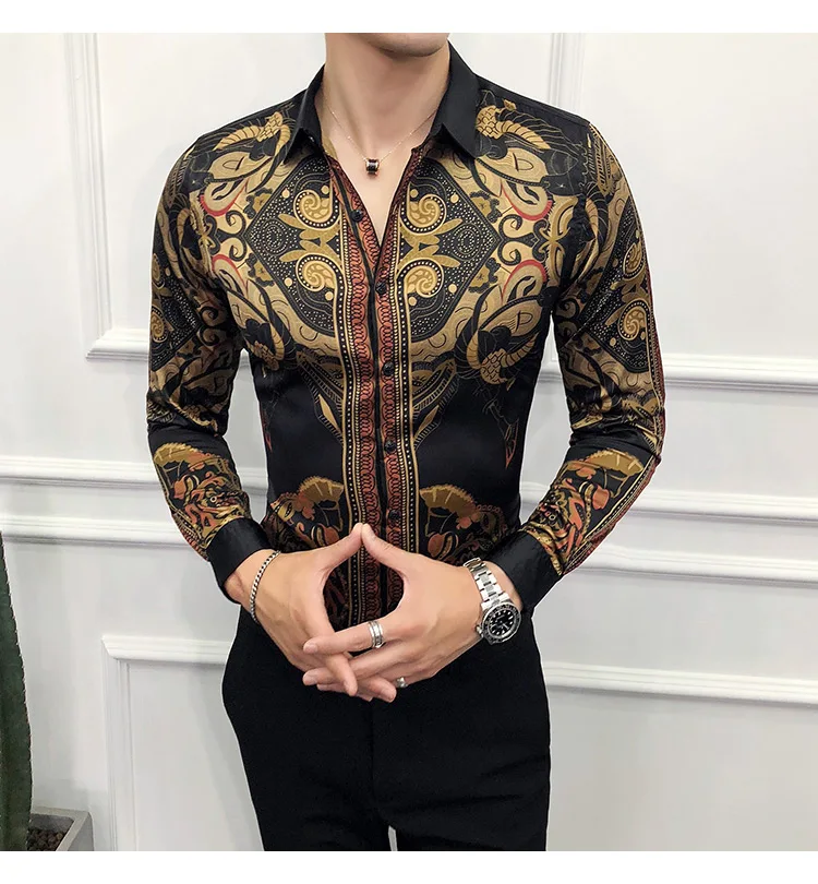 Golden Royal Print Men Cotton Long Sleeve T-shirt Male T shirt tops