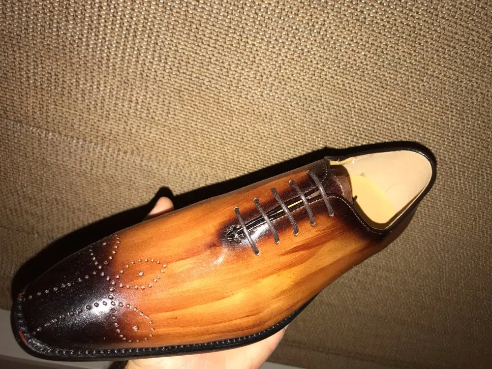 2 Mar 2019 08:47 I love the excellent quality of the leather and beautiful design of the shoes. The shoes are so elegant they must be worn for special occasions as you will be the center of attention. My choice was the red and dark brown mix. I purchased a red shoe creme and a cordovan wax to polish these shoes. I love the results of the treatment of wax to fill in the newly formed folds of the leather as they conformed to my feet. I love these shoes. |