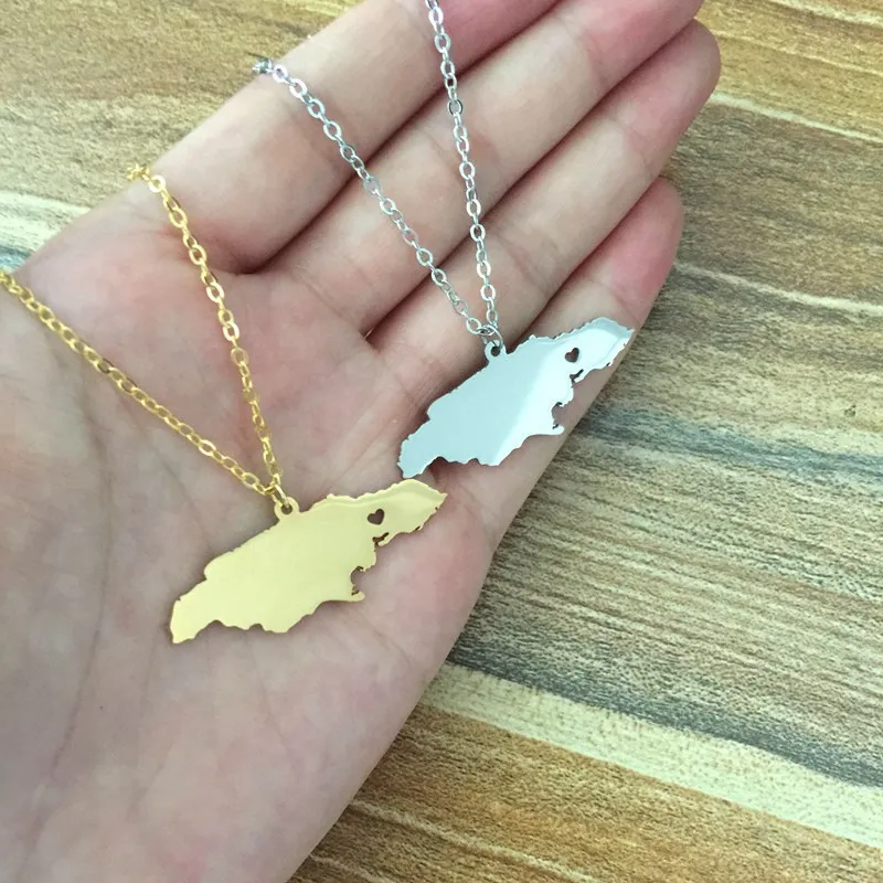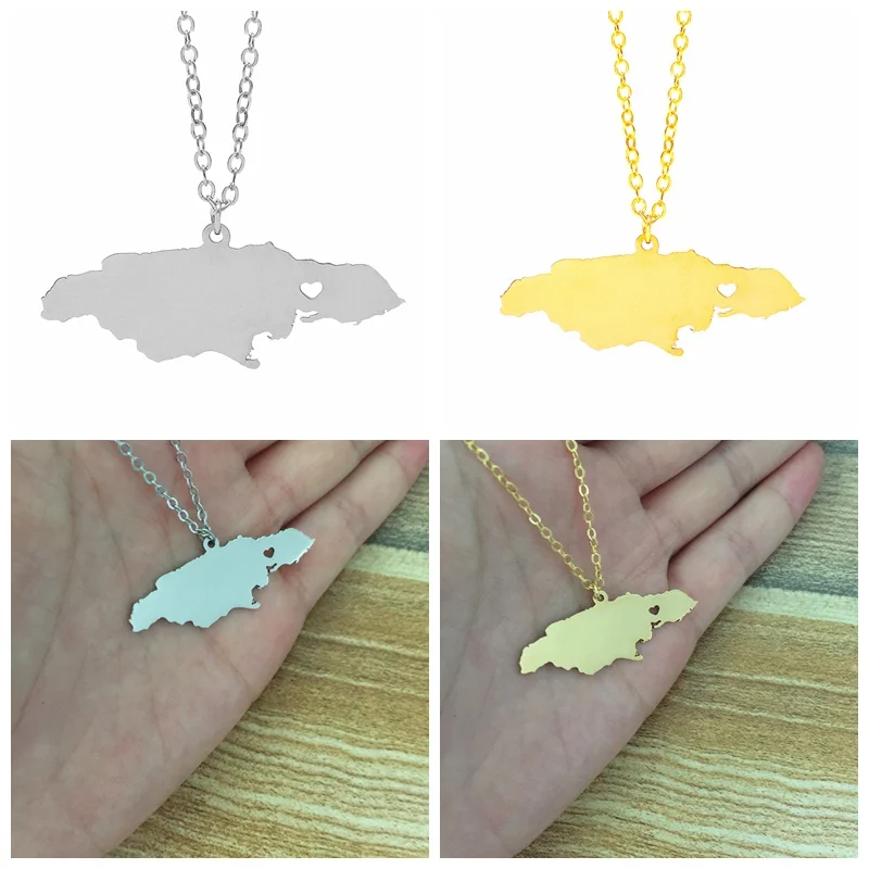 Jamaica Map Pendant Necklaces Stainless Steel Charm Country Necklace Silver Gold Love Hometown Gift Women Men Fashion Jewelry