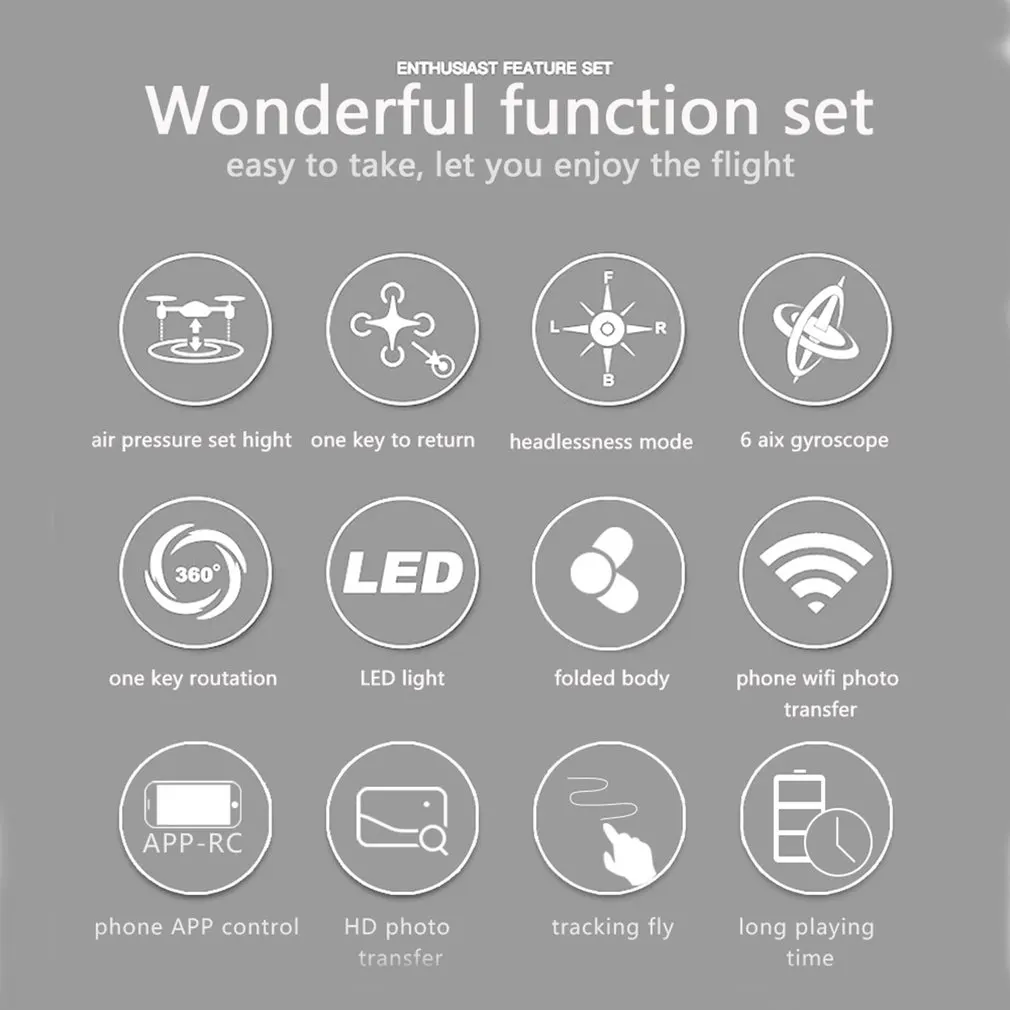 1.Function: Raise & Down/Forwards & Backwards/Left & Right Turning/Left & Right Flying/Hovering/360 Degree Rotating/Set Hight.