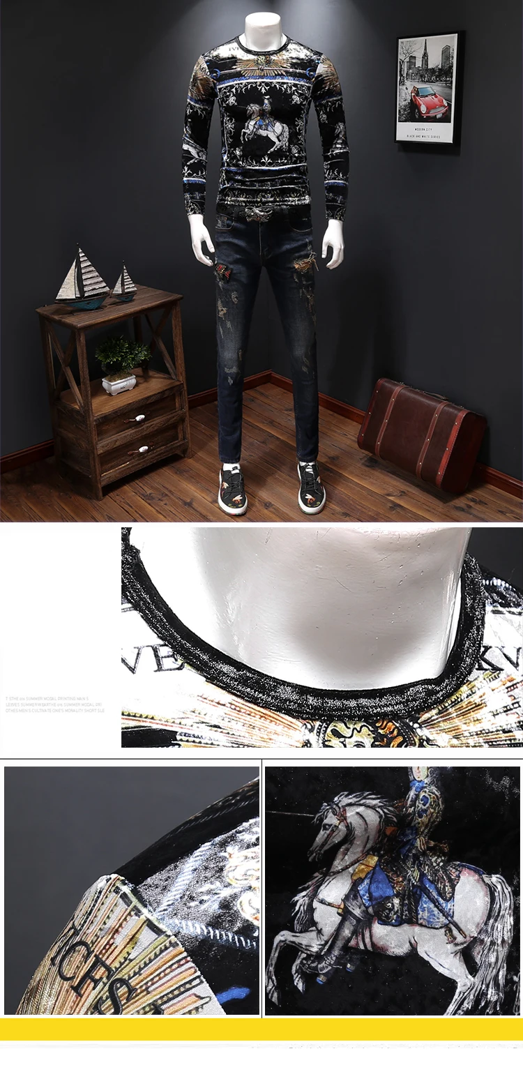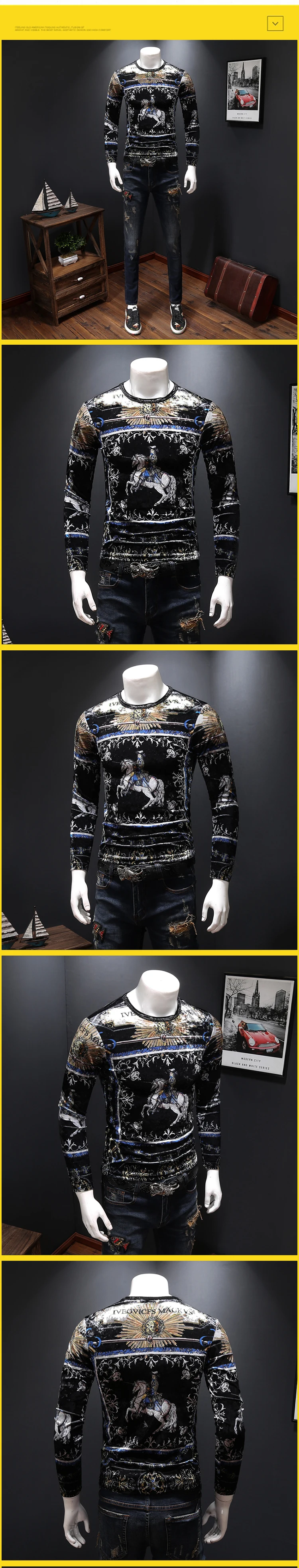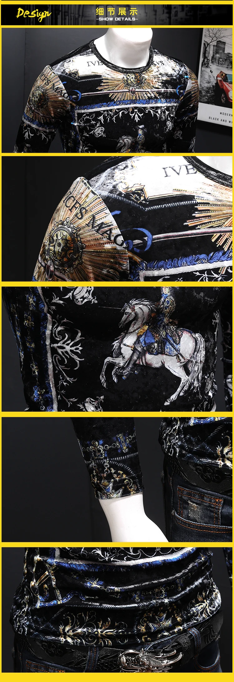 Luxury Velvet Tshirt Homme Round Neck 2019 Winter Royal Tshirt Men Slim Fit High Quality Velvet Tshirt Men Club Outfit T Shirt