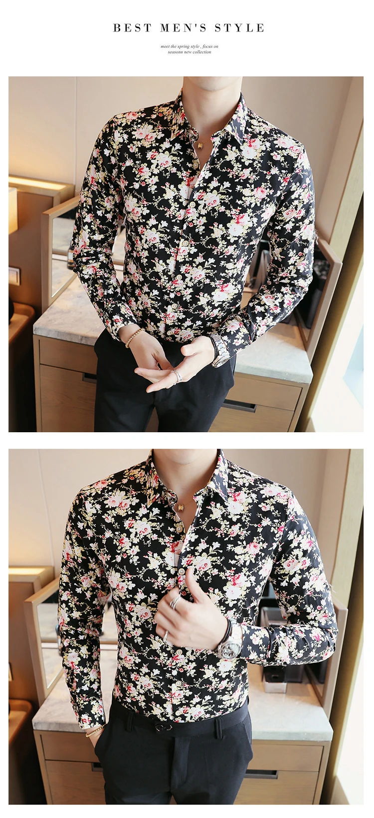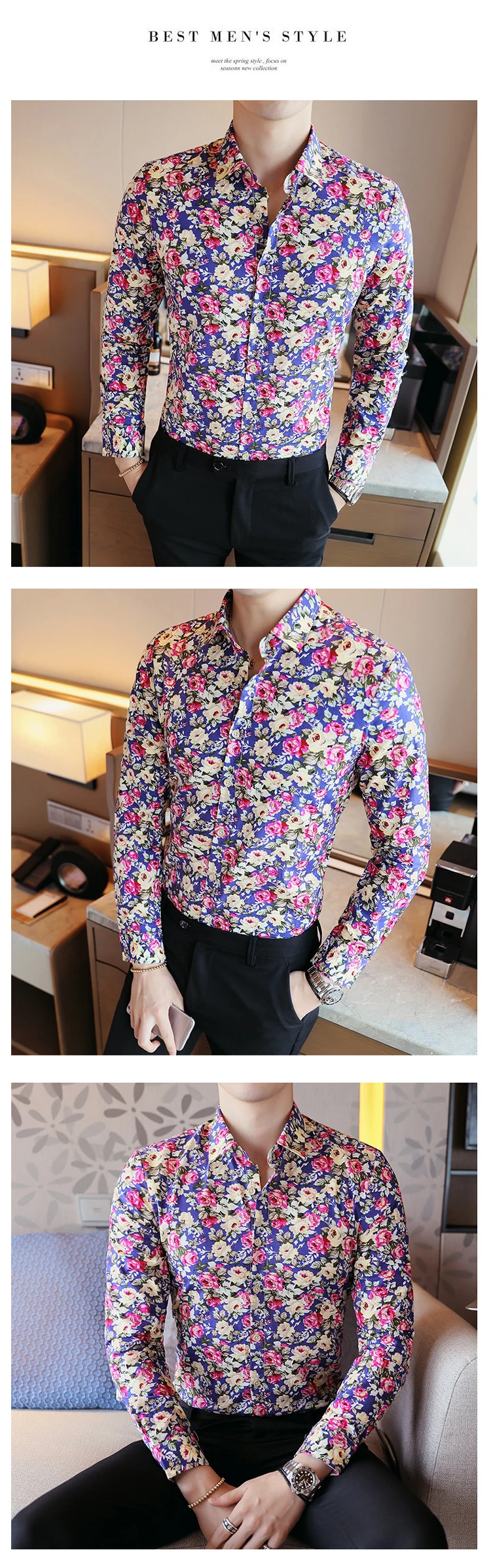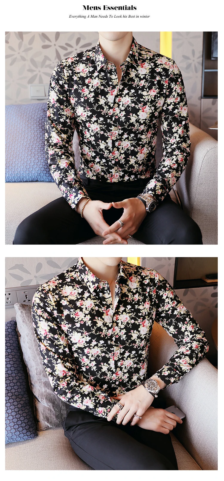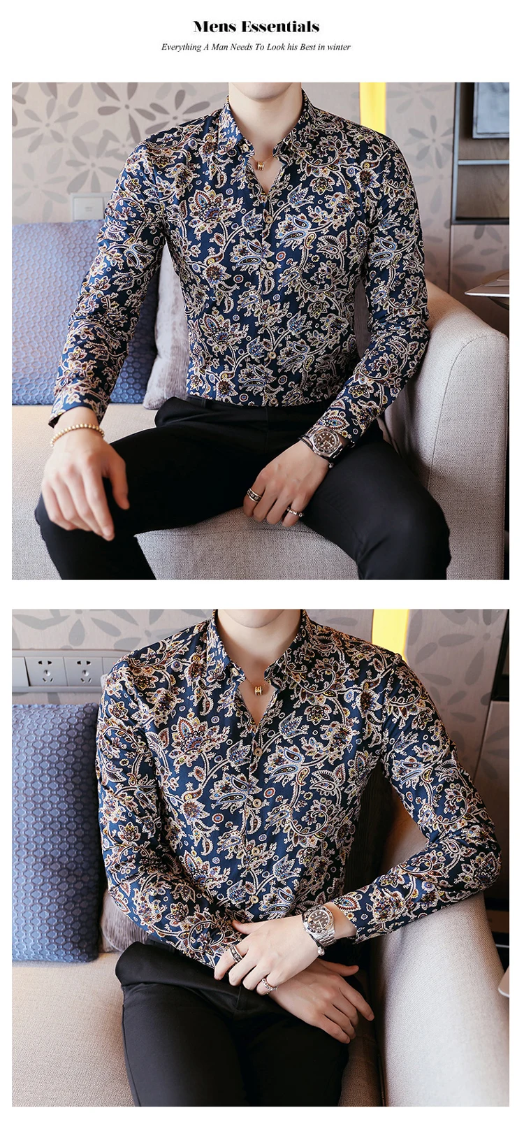 Men Shirt Baroque Fancy Shirts Club Outfits Luxury Mens Floral Shirts Royal Fashion Long Sleeve Camisa Masculina Shirt Men