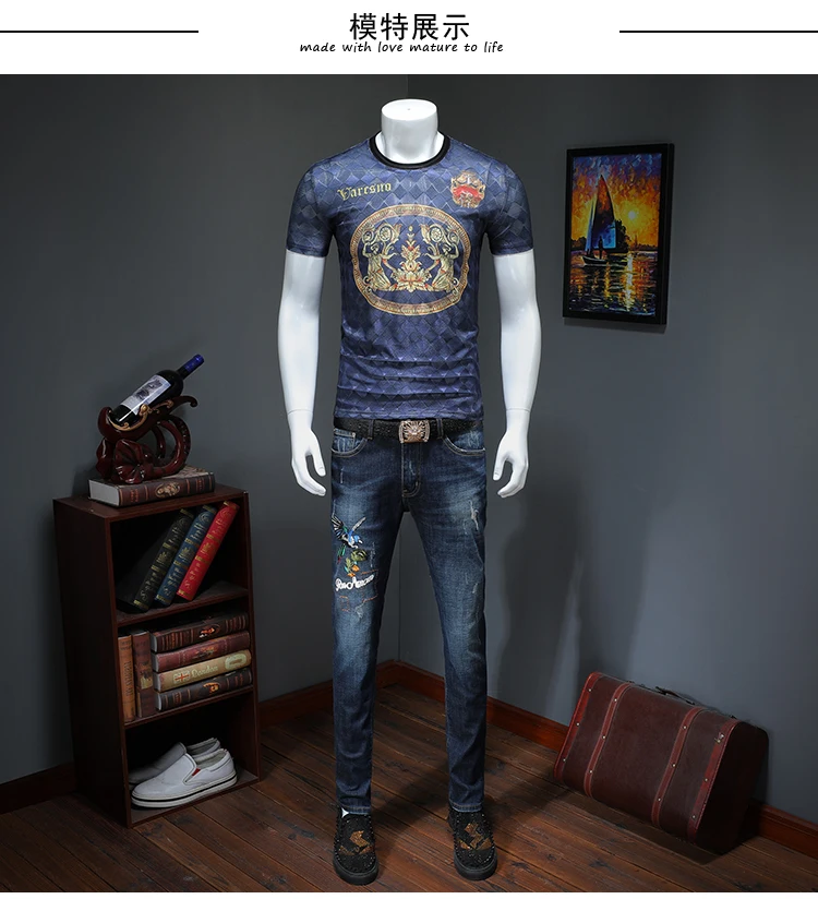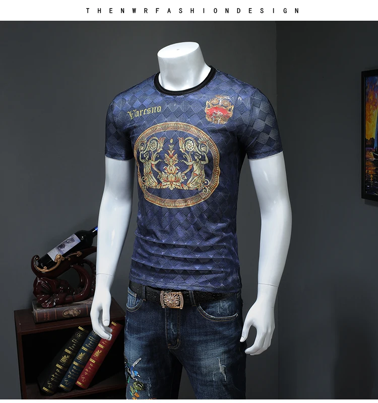 Mens Designer Tshirts Blue 2019 Fashion Men Tshirts Vintage Luxury Playera Para Hombre Slim Fit Royal Court Printed Tee Shirts