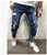Men’s Jeans Skinny Slim Fit Straight Ripped Distressed Pleated Knee Hole Denim Pants 2019 Summer Dark Blue Stretch Pencil Jeans