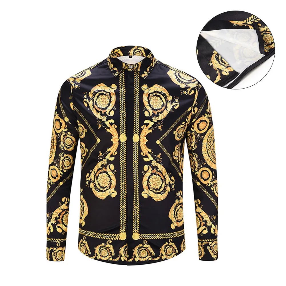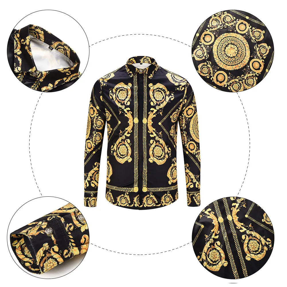Men's button-down shirts with luxury design features long sleeves, buttons, luxury prints and thin fabrics. It is suitable for street wear, performances, parties and daily life.