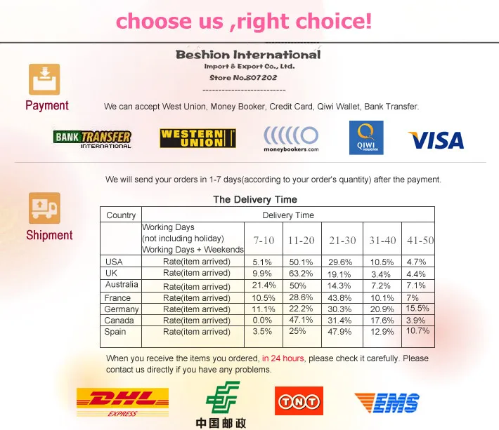 • If you did not receive the product within the guaranteed time( 45 days not including 2-5 day processing) you can request a refund or a reshipment.
