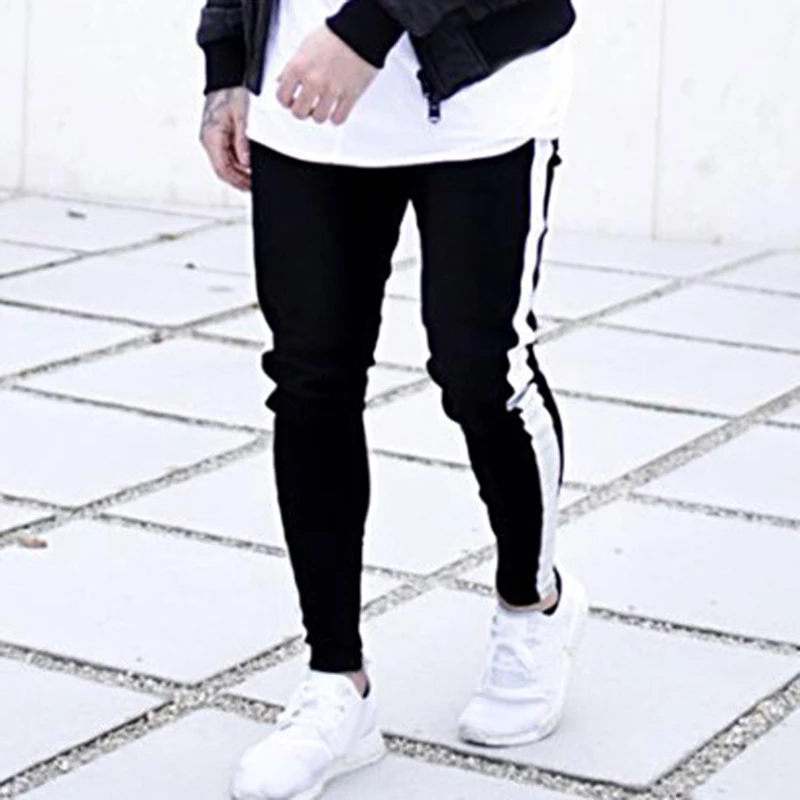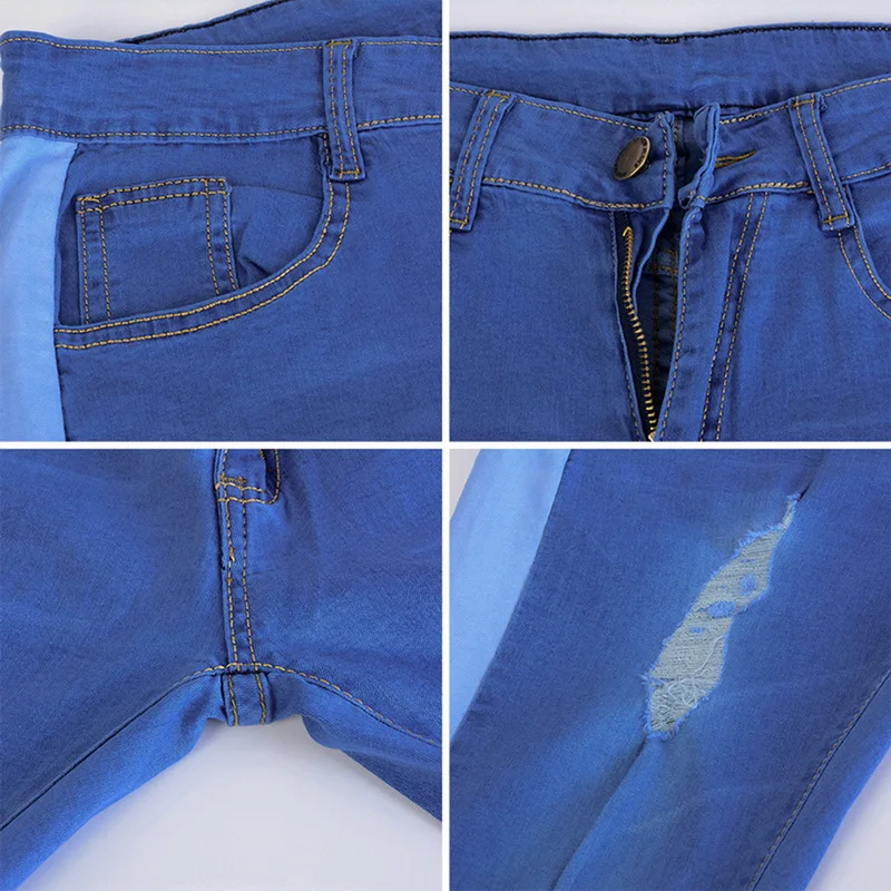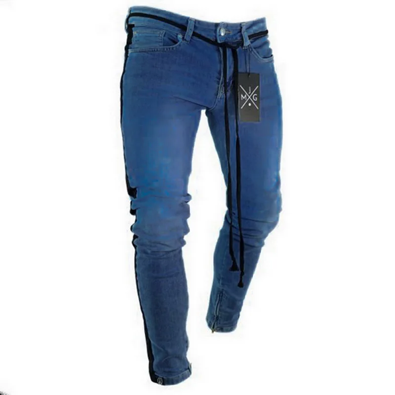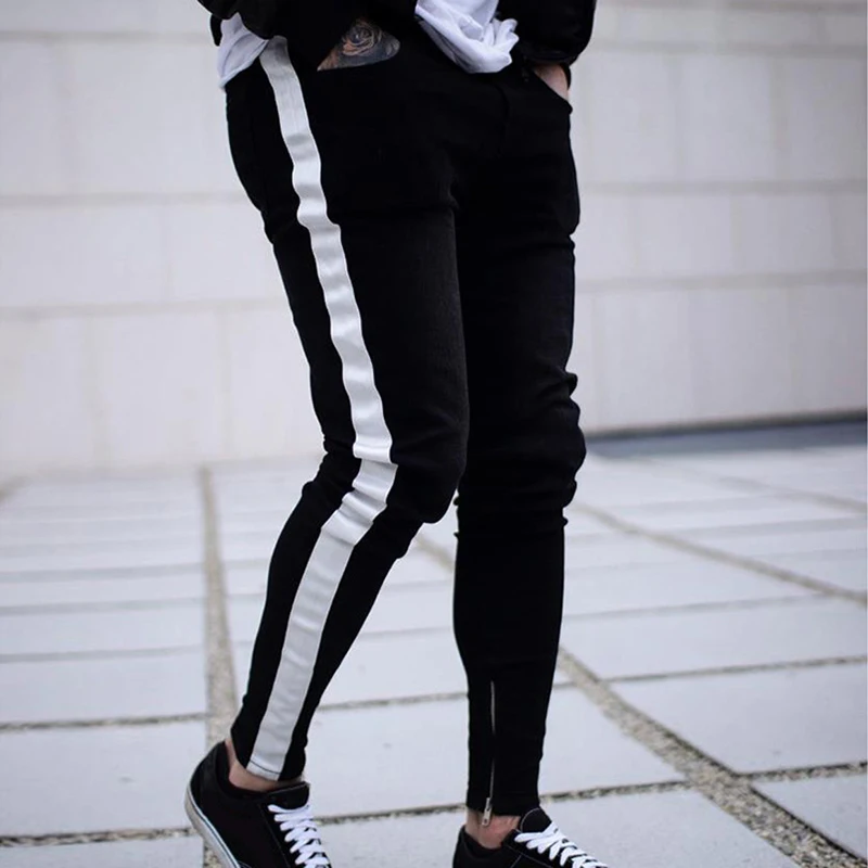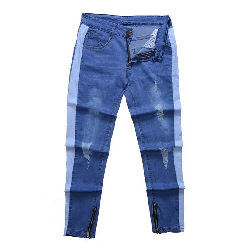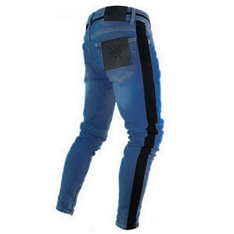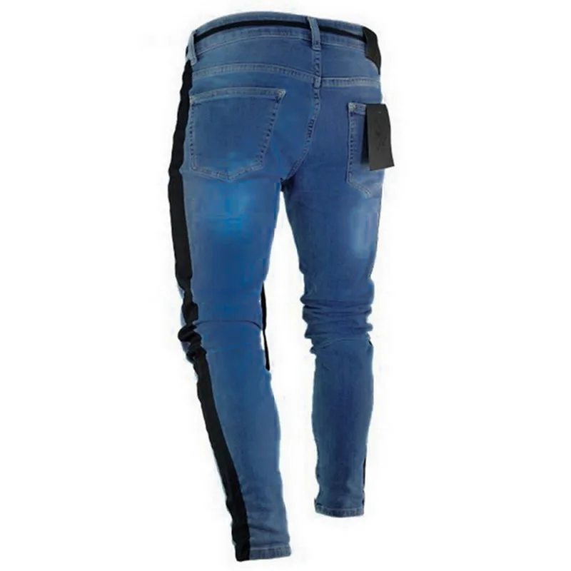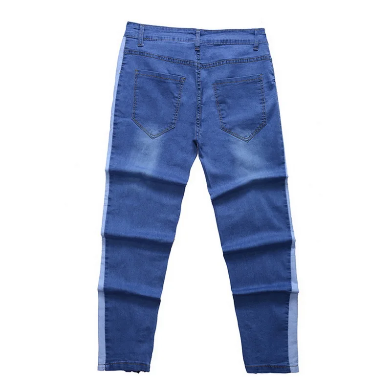 Oeak Mens Jeans 2019 New Sexy Ripped Hole Stretch Denim Trousers Male Straight Casual Stripe Streetwear Pencil Pants