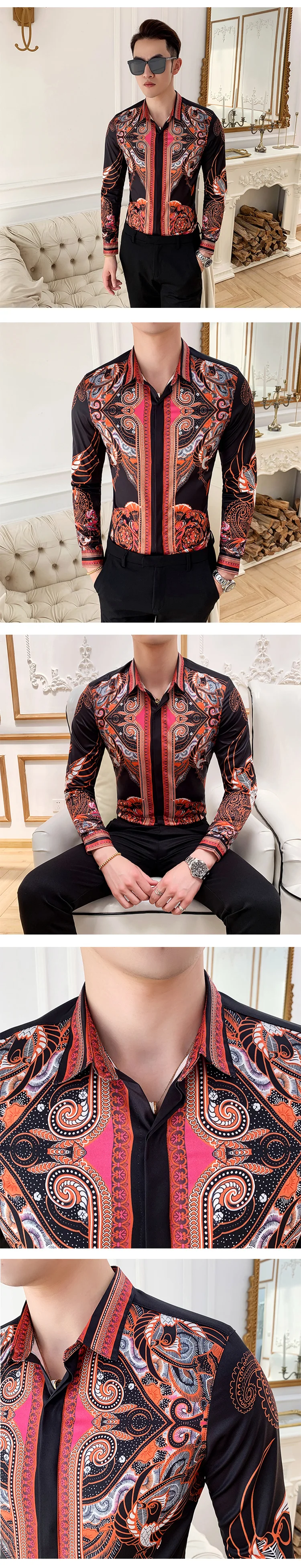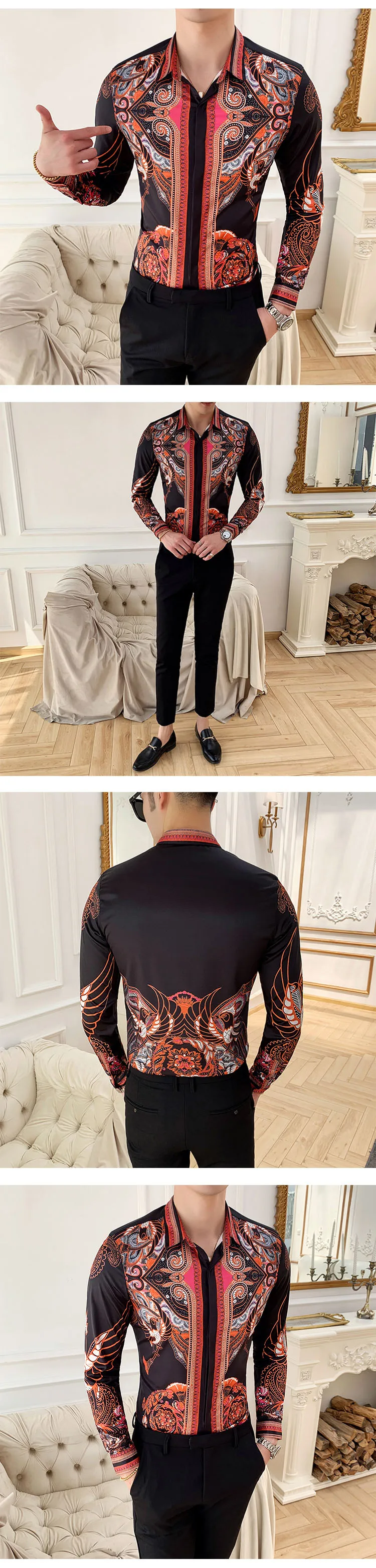 Print Fashion Show Vintage luxury Shirt Men Camisa Masculina Slim Fit Club Party Prom Printed Mens Shirts Chemise Homme