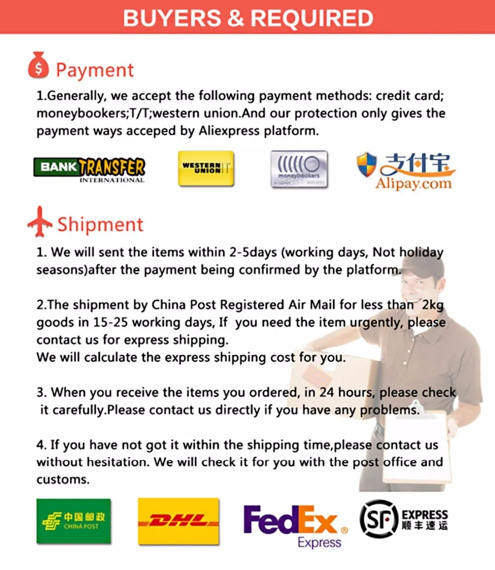 Packages from our warehouse in China will be shipped by ePacket or EMS depending on the weight and size of the product. Packages shipped from our US warehouse are shipped through USPS.