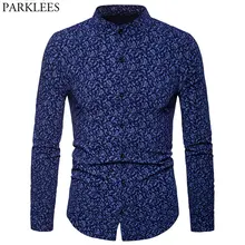 Blue Paisley Shirt Men Camisa Masculina Floral 2018 Brand New Mandarin Collar Mens Dress Shirts Casual Slim Fit Chemise Homme