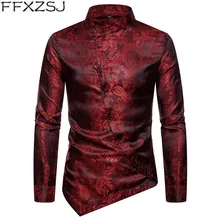 Mens Paisley Dress Shirts Casual Slim Fit Men Shirt Irregular Oblique Hem Business Social Shirt Men Long Sleeve Chemise Homme