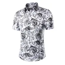 Fashion Baroque Male Shirt Vintage Mens Paisley Shirt Summer Short Sleeve Button Down Hawaiian Shirt Beach Casual Aloha Shirts