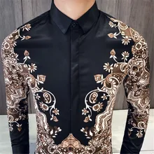 Luxury Royal Shirt Men Casual Slim Fit Long Sleeve Men Paisley Print Shirt Camisa Social Masculina Manga Longa Prom Party Shirt