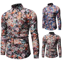 Men Paisley Shirt 2018 Spring Autumn New Men’s Paisley Printing Long Sleeve Dress Shirt Fashion Youth Bottoming Shirts for Men