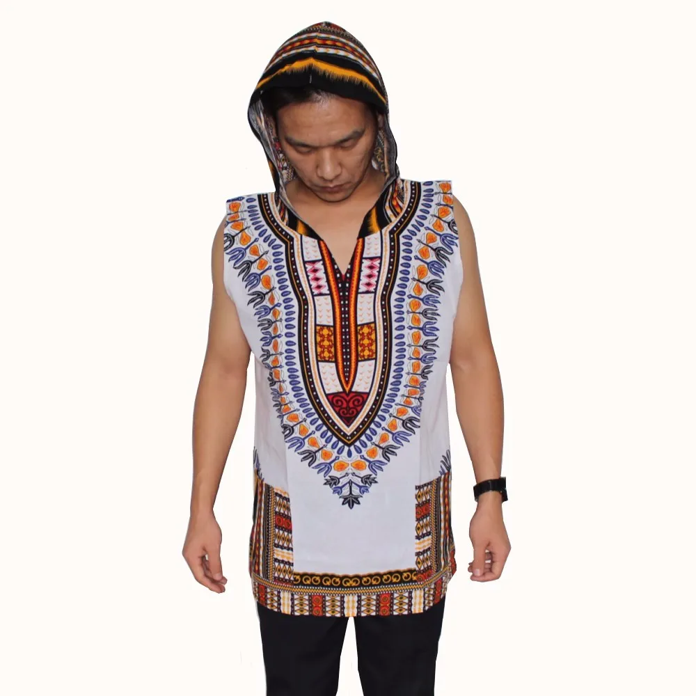 Sleeveless Dashiki Hoodies Loose African Hooded Dashiki Fabric Hoody 100% Cotton Fashion Clothes Unisex Kimono with Pocket