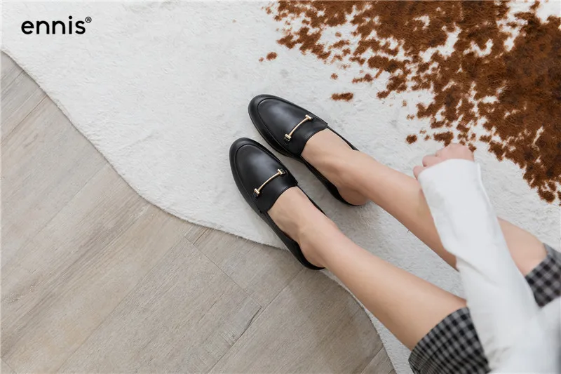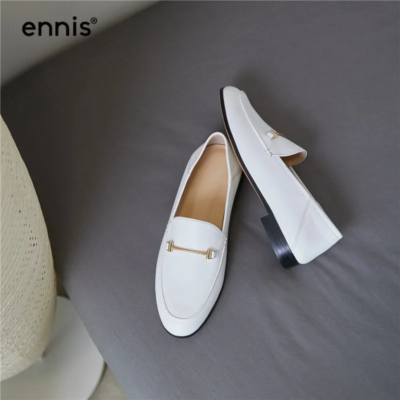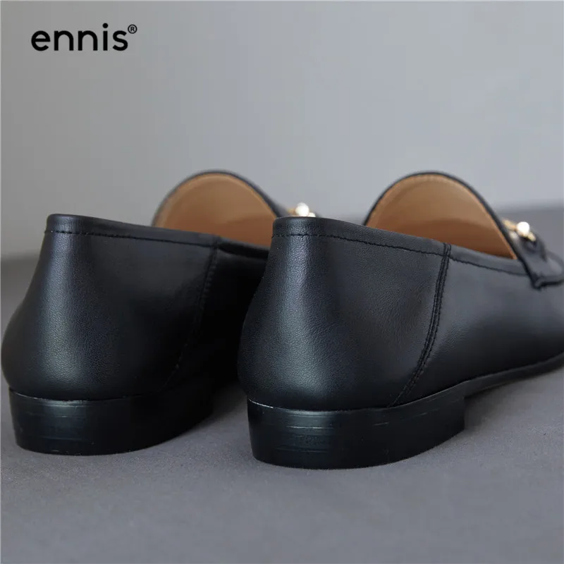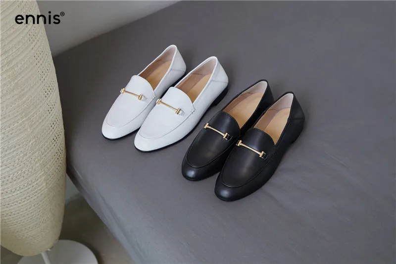 Spring Black Flat Loafers Women Genuine Leather Boat Shoes Metal Decoration Casual Flats Female White Loafer Shoes Fashion C927