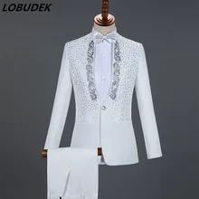 England Style Formal Men’s Suits 4 Colors Rhinestones Blazers Pants Sets Singer Host Concert Stage Outfits Wedding Party Dresses