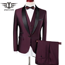 Plyesxale Men Suit 2018 Wedding Suits For Men Shawl Collar 3 Pieces Slim Fit Burgundy Suit Mens Royal Blue Tuxedo Jacket Q83
