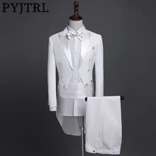 PYJTRL New Plus Size S-4XL Mens Classic Black White Shiny Lapel Tail Coat Tuxedo Wedding Groom Stage Singer Four Piece Suit