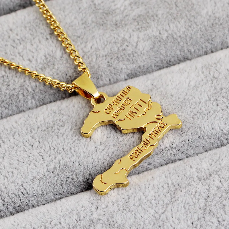 Trendy Fashion Gold Color Israel Haiti Mexico Country Map Pendant Necklace Men Women Choker Necklaces Jewelry Collier homme