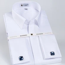 Men’s Dress Shirts French Cuff Blue White Long Sleeved Business Casual Shirt Slim Fit Solid Color French Cufflinks Shirt